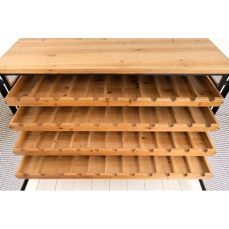 BAREK NA WINO BODEGA 60X30 CM SOSNA Dekoracyjny regał na wino, wykonany z drewna sosnowego oraz elementów metalowych. Drewniany regał może być wykorzystany na przechowywanie 14 butelek wina oraz kilku lampek na wino. Nietuzinkowy barek prezentuje się oryginalnie i nowocześnie, będzie stanowić piękną dekorację każdego wnętrza. Celowe ślady nierówności,...