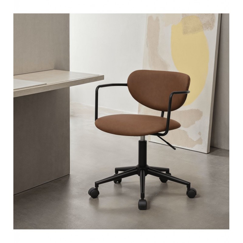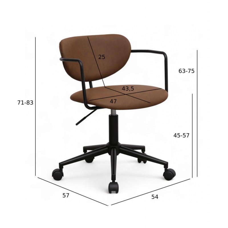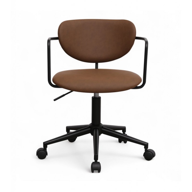 Krzesło biurowe LIDO to idealne połączenie wygody i eleganckiego designu. Zostało obite modną tkaniną z ekoskóry w odcieniach brązowych, która wprowadza do wnętrza subtelną nutę nowoczesności oraz prostą, ponadczasową elegancję. Idealnie wyprofilowane oparcie i miękkie siedzisko gwarantują wysoki komfort użytkowania, a obrotowa, metalowa podstawa w czarnym kolorze podkreśla spójny i harmonijny charakter mebla. Zintegrowane podłokietniki dodatkowo zwiększają wygodę, zapewniając ergonomiczne podparcie podczas pracy. Oryginalne krzywizny nadają krzesłu wyjątkowego uroku, dzięki czemu model LIDO doskonale odnajdzie się zarówno w nowoczesnych, jak i industrialnych aranżacjach biurowych. To propozycja dla osób, które cenią sobie nie tylko funkcjonalność, ale także estetyczne, proste klasyczne wykończenie.