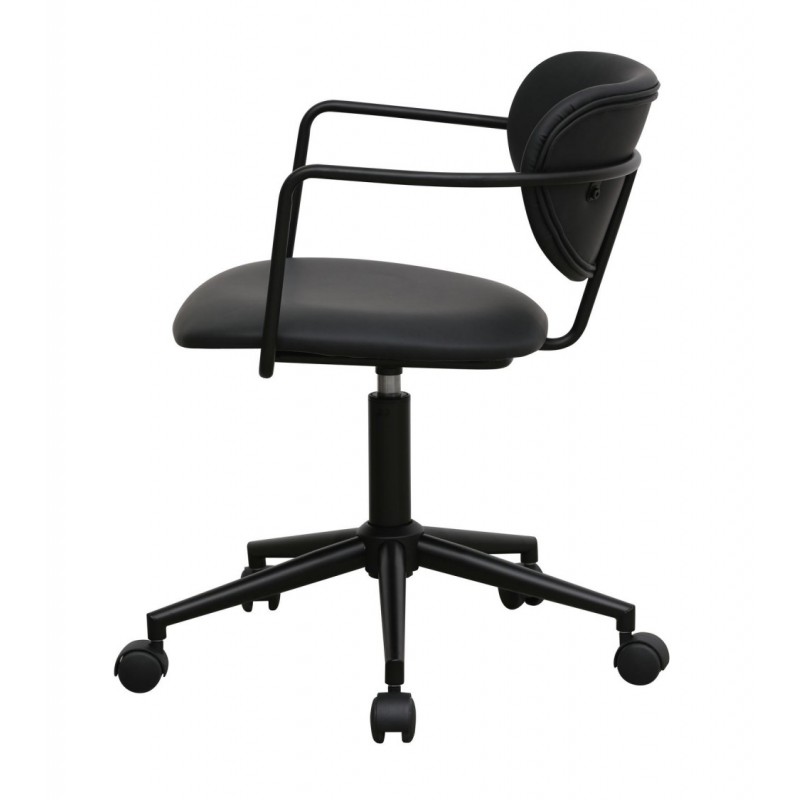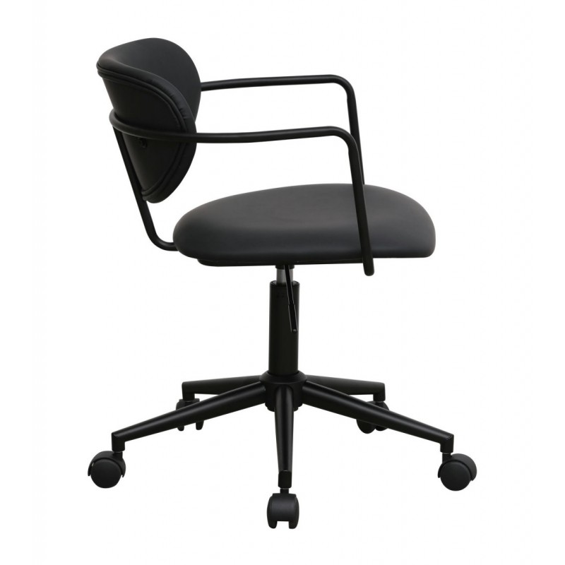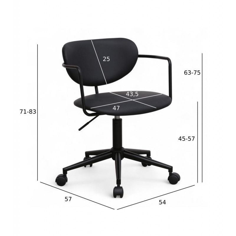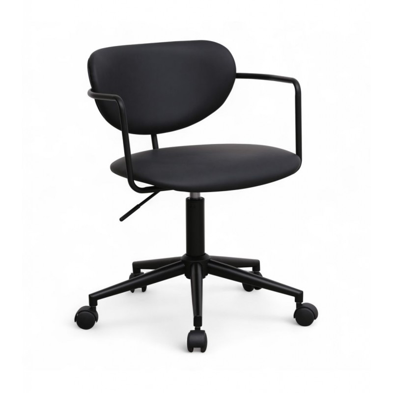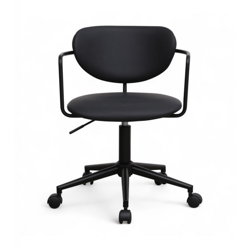 Krzesło biurowe LIDO to idealne połączenie wygody i eleganckiego designu. Zostało obite modną tkaniną z ekoskóry w odcieniach czerni, która wprowadza do wnętrza subtelną nutę nowoczesności oraz prostą, ponadczasową elegancję. Idealnie wyprofilowane oparcie i miękkie siedzisko gwarantują wysoki komfort użytkowania, a obrotowa, metalowa podstawa w tym samym kolorze podkreśla spójny i harmonijny charakter mebla. Zintegrowane podłokietniki dodatkowo zwiększają wygodę, zapewniając ergonomiczne podparcie podczas pracy. Oryginalne krzywizny nadają krzesłu wyjątkowego uroku, dzięki czemu model LIDO doskonale odnajdzie się zarówno w nowoczesnych, jak i industrialnych aranżacjach biurowych. To propozycja dla osób, które cenią sobie nie tylko funkcjonalność, ale także estetyczne, proste klasyczne wykończenie.