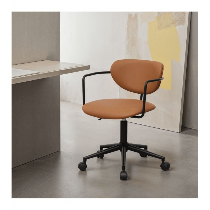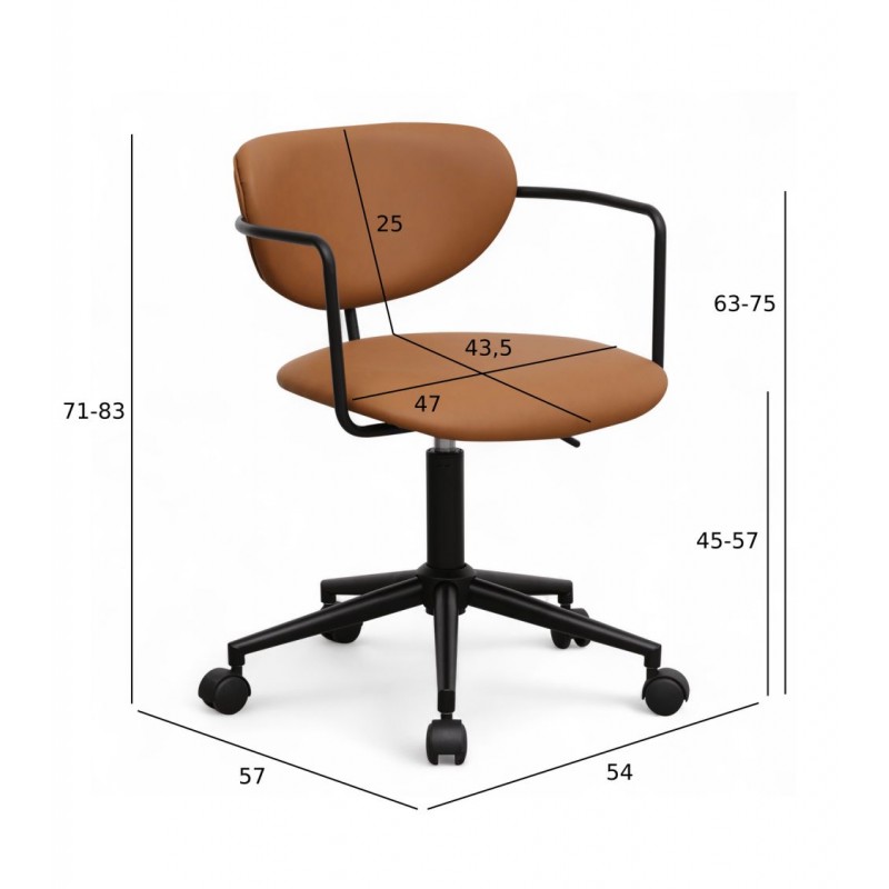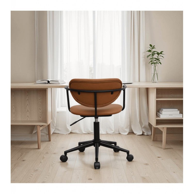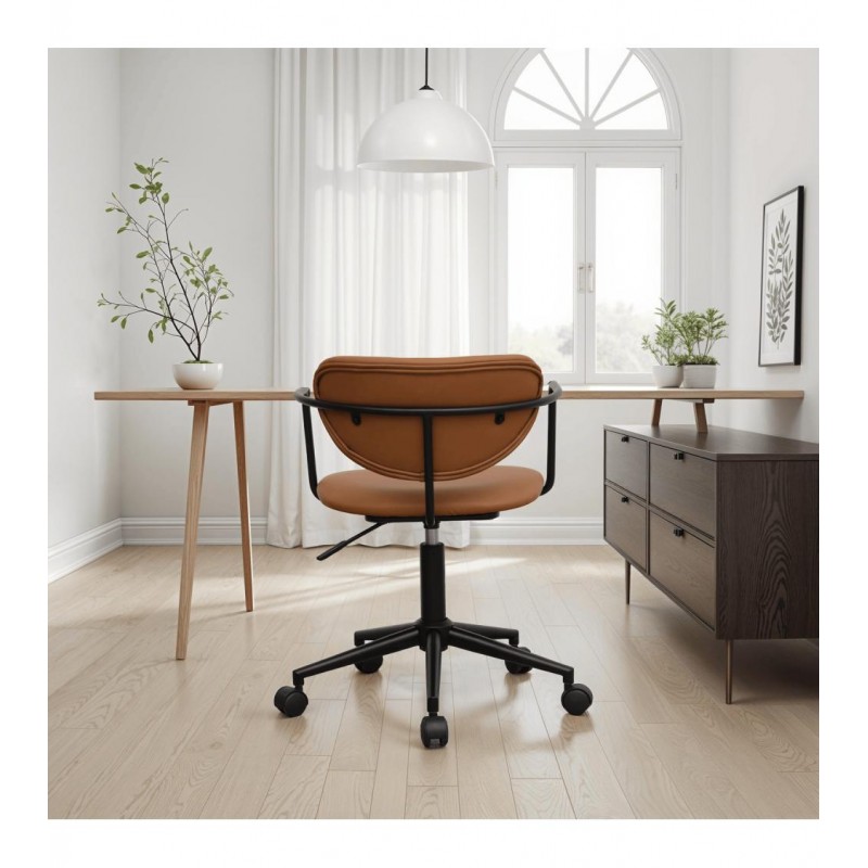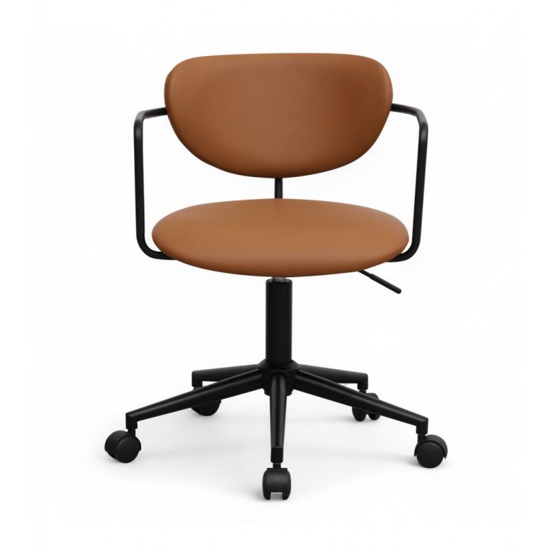 Krzesło biurowe LIDO to idealne połączenie wygody i eleganckiego designu. Zostało obite modną tkaniną z ekoskóry w odcieniach brązowych, która wprowadza do wnętrza subtelną nutę nowoczesności oraz prostą, ponadczasową elegancję. Idealnie wyprofilowane oparcie i miękkie siedzisko gwarantują wysoki komfort użytkowania, a obrotowa, metalowa podstawa w czarnym kolorze podkreśla spójny i harmonijny charakter mebla. Zintegrowane podłokietniki dodatkowo zwiększają wygodę, zapewniając ergonomiczne podparcie podczas pracy. Oryginalne krzywizny nadają krzesłu wyjątkowego uroku, dzięki czemu model LIDO doskonale odnajdzie się zarówno w nowoczesnych, jak i industrialnych aranżacjach biurowych. To propozycja dla osób, które cenią sobie nie tylko funkcjonalność, ale także estetyczne, proste klasyczne wykończenie.
