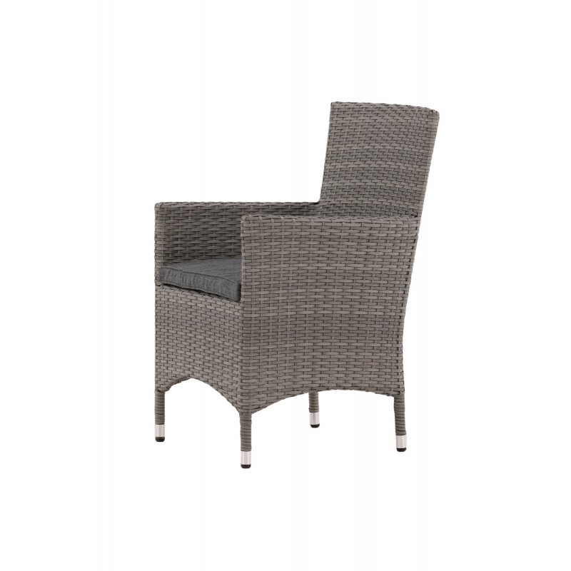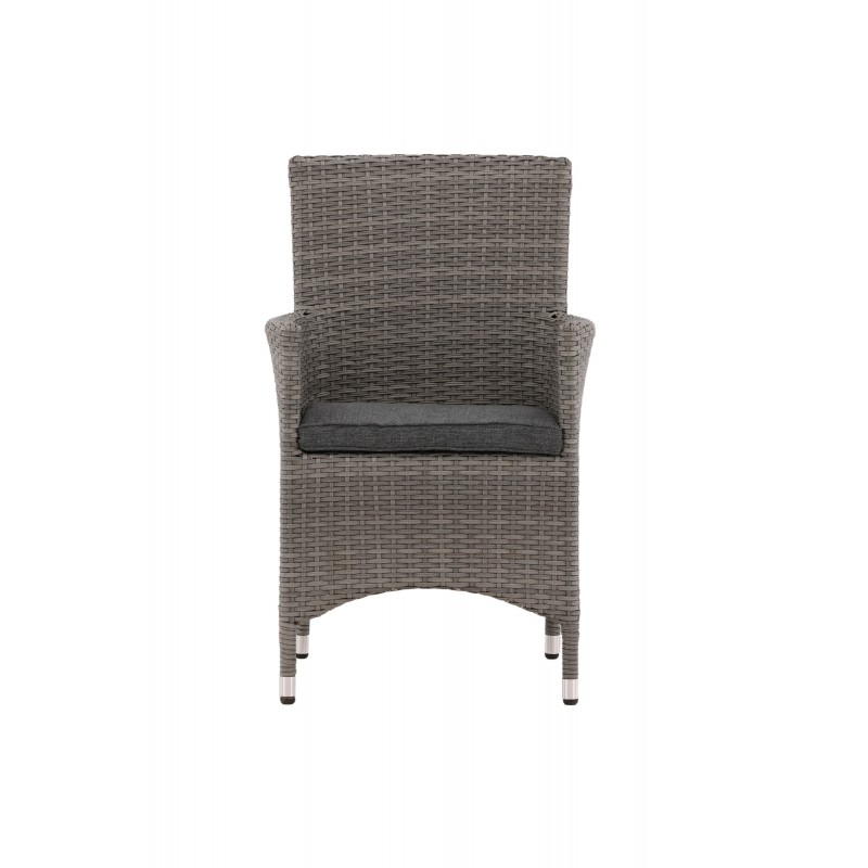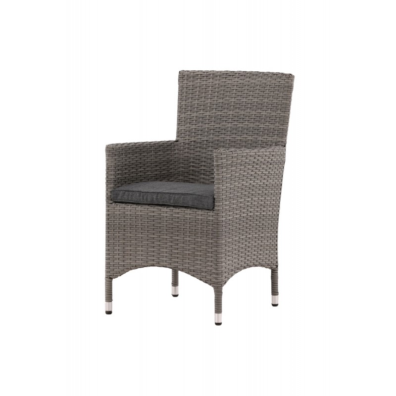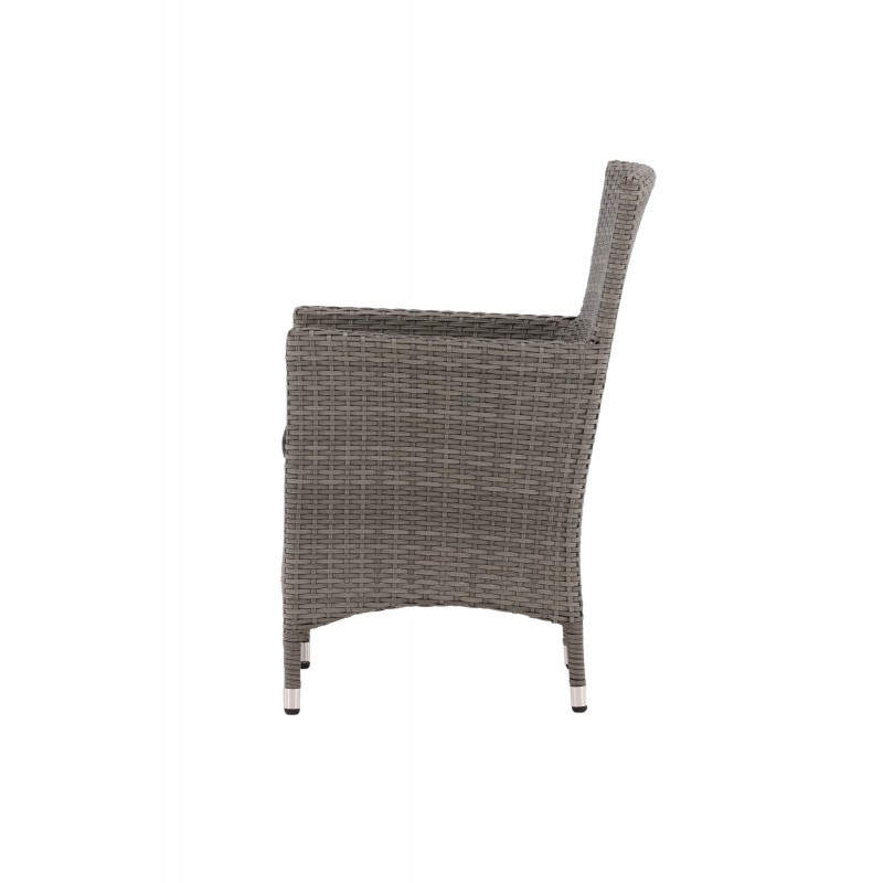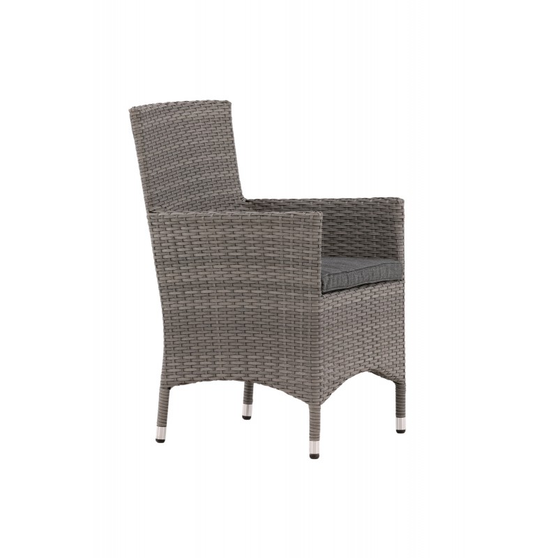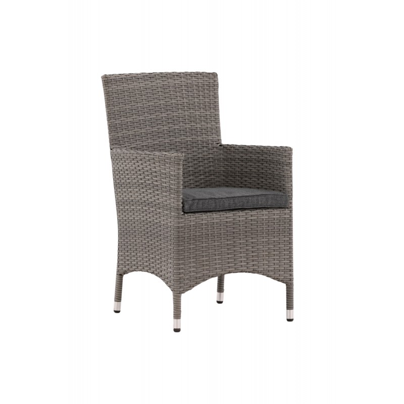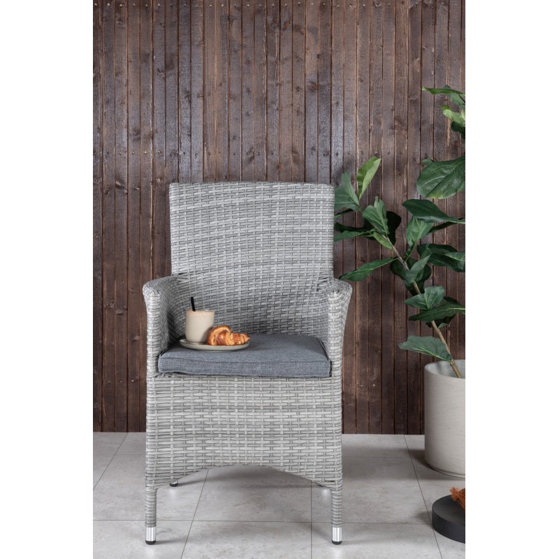 Nowoczesny, stylowy i trwały - czego chcieć więcej? W tym szarym fotelu z serii Malin możesz cieszyć się wieloma kolacjami z bliskimi w okresie letnim. Dzięki ramie z aluminium i sztucznego rattanu otrzymujesz solidne krzesło, które przetrwa próbę czasu. Usiądź wygodnie tego lata i ciesz się wspaniałymi posiłkami na świeżym powietrzu! Krzesło jest składane. Porady dotyczące pielęgnacji: Konstrite to tworzywo sztuczne, które idealnie nadaje się do naszego skandynawskiego klimatu. Materiał jest odporny na promieniowanie UV i wytrzymuje pogodę i wiatr. Fakt, że jest odporny na promieniowanie UV oznacza, że meble nie blakną, jednak zawsze zalecamy przechowywanie mebli pod osłoną mebli lub w innym suchym i chłodnym miejscu - aby przedłużyć ich żywotność.