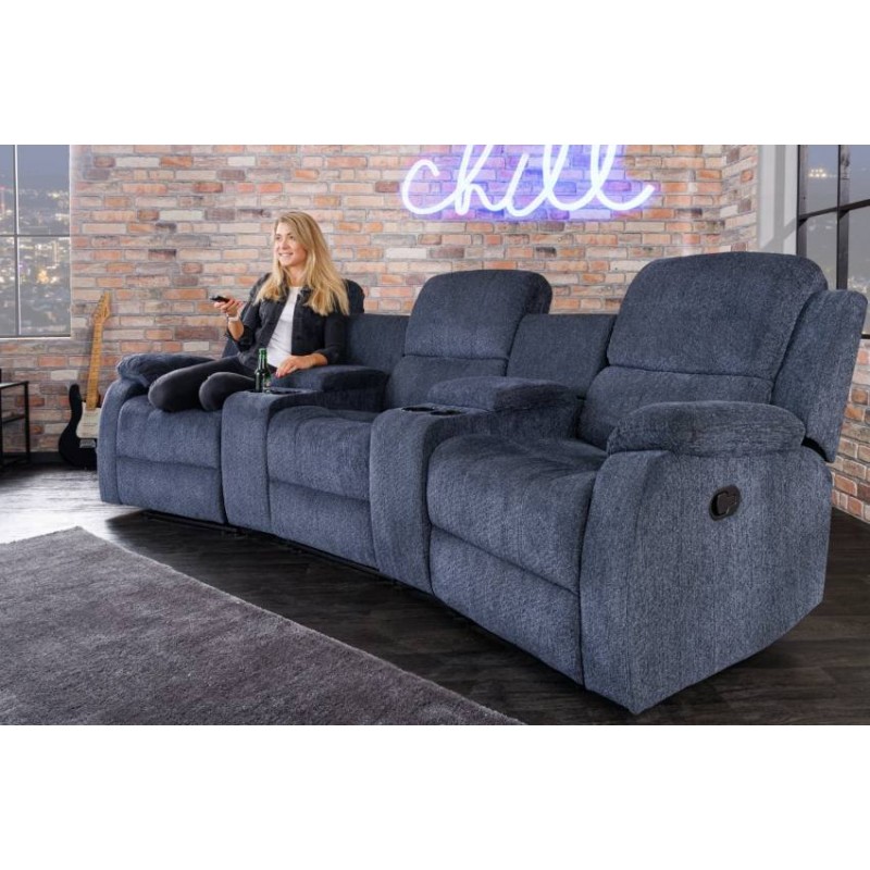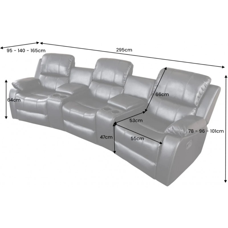 Fotel 3-osobowy HOLLYWOOD to funkcjonalny mebel, który będzie idealnym rozwiązaniem do każdego kina domowego czy salonu, gdzie fotel ten nada stylu i niesamowitego wykończenia. Całość mebla została pokryta modną wysokiej jakości tkaniną plecioną strukturalną w kolorze szarym, której barwa podkreśla charakter tego mebla. Główną funkcjonalność fotelom zapewnia możliwość ich rozłożenia, co daje użytkownikowi komfort i pełną wygodę. Dodatkową praktyczność zapewniają dwa schowki między fotelami, cztery miejsca na napoje oraz boczne uchwyty do wysuwania podnóżków, co sprawia iż mebel ten jest najlepszy w swojej kategorii i będzie idealnym rozwiązaniem do każdego większego pomieszczenia. Fotel 3-osobowy HOLLYWOOD sprawdzi się znakomicie w każdym domu, gdzie doda funkcjonalności i stylu, ale także dzięki swojej nietypowej formie przykuje uwagę każdego.