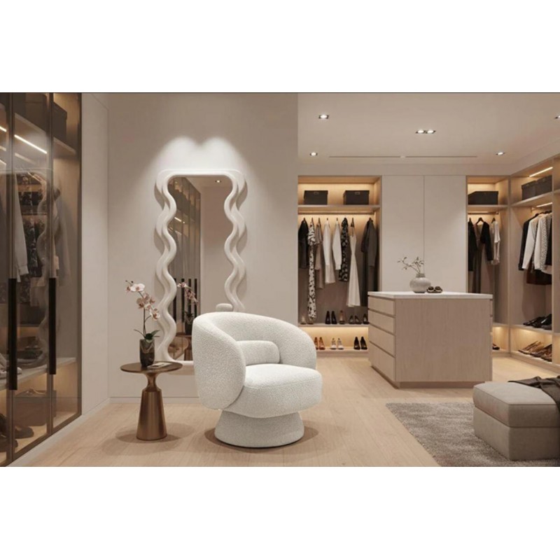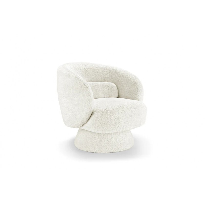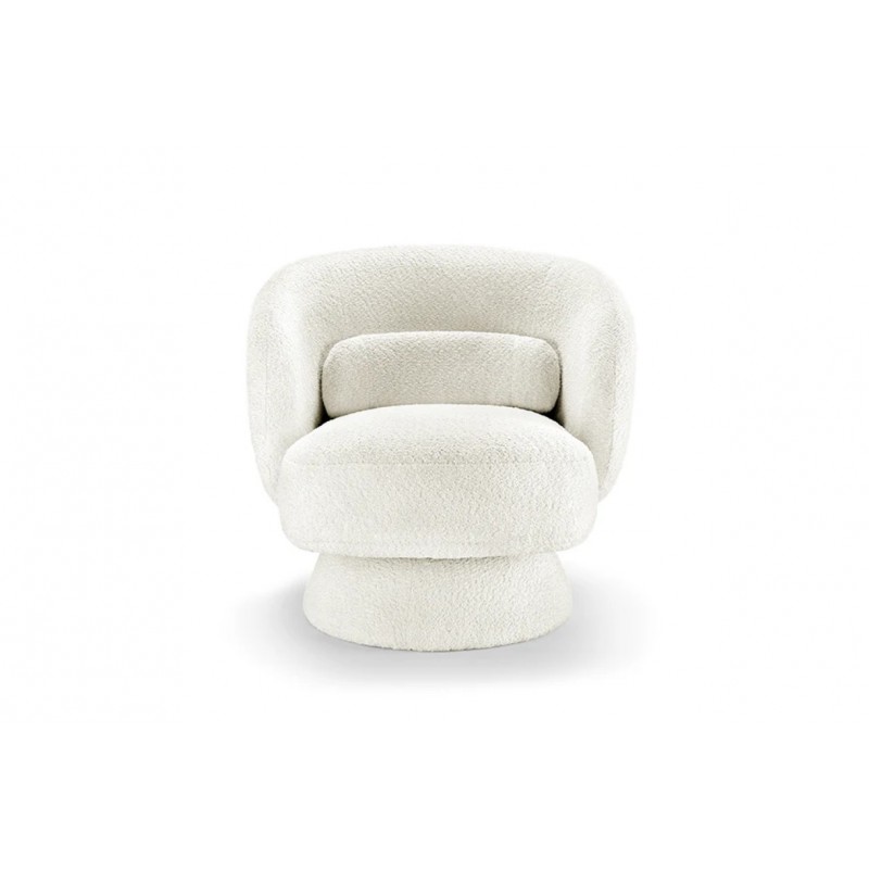 Fotel BOSSA NOVA to idealne rozwiązanie do każdego wnętrza w stylu skandynawskim oraz nowoczesnym, gdzie mebel ten doda przestrzeni charakteru i niesamowitego wykończenia. Mebel ten został obity wysokiej jakości modnym materiałem boucle w kolorze białym, który zapewnia miękkość oraz niesamowity komfort. Wyprofilowane oparcie oraz siedzisko odpowiednio wspiera sylwetkę siedzącego podczas użytkowania. Jego stabilna obrotowa podstawa również została otapicerowana tym samym materiałem, który idealnie dopełnia w całości jego wyjątkowy wygląd. Fotel ten został stworzony głównie z myślą o użytkownikach ceniących sobie funkcjonalność oraz stylowe wykończenie. Fotel BOSSA sprawdzi się znakomicie w każdym salonie, gdzie dzięki swojej formie stanie się niesamowitą jego dekoracją dodając wnętrzu zjawiskowego efektu. Bez wątpienia stanie się funkcjonalnym dodatkiem zapewniającym komfort na wiele godzin pozwalając się cieszyć relaksem każdego dnia. Efekt końcowy połączenia białego koloru siedziska oraz podstawy jest jednolity, dzięki czemu doskonale odnajdzie się w stylu nowoczesnym, skandynawskim oraz klasycznym.