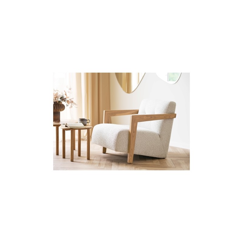 FOTEL SAVONA BIAŁY BOUCLE Savona fotel - fotel w tkaninie boucle, koloru białego z drewnianymi nogami