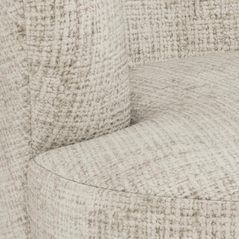 Fotel wypoczynkowy to połączenie nowoczesnego designu z najwyższym komfortem użytkowania. Jego miękka, zaokrąglona forma przyciąga wzrok i nadaje wnętrzu eleganckiego, a jednocześnie przytulnego charakteru. Siedzisko oraz oparcie zostały obite delikatną tkaniną w beżowym kolorze o wyrazistej, przyjemnej w dotyku strukturze, która podkreśla wyjątkowy styl mebla.