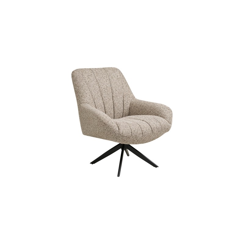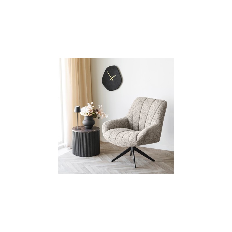 Obrotowy fotel Grandola- to nowoczesny design z wyjątkową wygodą. Miękkie, szare siedzisko i obrotowa konstrukcja gwarantują komfort, a czarne metalowe nogi dodają elegancji. Idealny do salonu, biura lub przestrzeni relaksu w stylu nowoczesnym lub industrialnym.