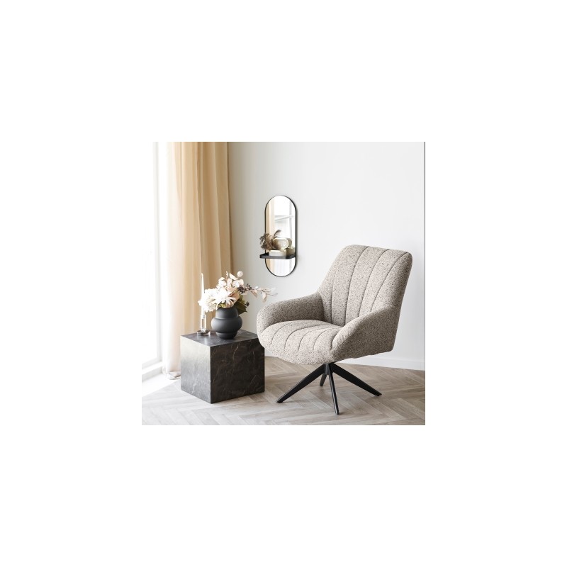 FOTEL MERIDA SZAROBRĄZOWY BOUCLE Merida fotel - fotel z tkaniny boucle w kolorze, szarobrązowej z czarnymi nogami