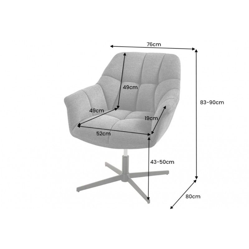 FOTEL OBROTOWY PAPILLON SZARY WELUR Fotel obrotowy Papillon to mebel, którego siedzisko zostało otapicerowane elegancką, piękną tkaniną w kolorze szarym i postawione na metalowych, czarnych nogach. Ozdobne pikowania na siedzisku i oparciu nadają temu modelowi nowoczesności i elegancji. To beżowe krzesło ma funkcję obrotu o 180 stopni i może być...