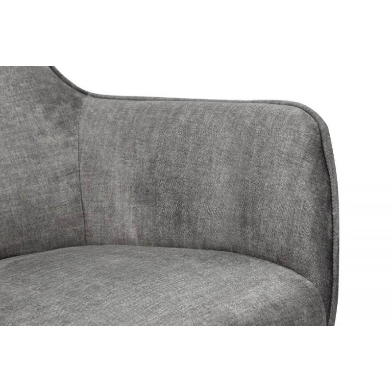 Fotel VOGUE to stylowy mebel, który idealnie wpasuje się w każde wnętrze w stylu nowoczesnym, gdzie dzięki swojej palecie barw oraz ciekawej formie przykuje uwagę każdego dodając przestrzeni niesamowitego stylu. Wyróżnia się przede wszystkim swoją oryginalną formą oraz bardzo ciekawym wyglądem, dzięki zastosowaniu na nim modnej strukturalnej tkaniny w kolorze szarym. Kubełkowy geometryczny kształt siedziska oraz wysokie oparcie, z dekoracyjnymi przeszyciami gwarantuje wygodę użytkowania na długi czas. Fotel ten stworzony został głównie z myślą o użytkownikach ceniących sobie funkcjonalność oraz stylowe wykończenie. Jego obrotową podstawę stanowi konstrukcja wykonana z metalu w czarnym kolorze, przez co prezentuje się zjawiskowo i znakomicie dopełnia wygląd mebla. Fotel VOGUE to nie tylko funkcjonalny i wygodny element wyposażenia, ale także stylowa dekoracja, wprowadzająca do wnętrza odrobinę nowoczesnej elegancji i oryginalności.