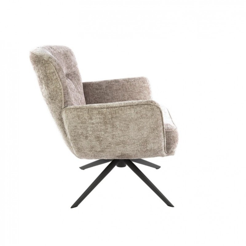 Nowoczesny fotel XAVIER to mebel posiadający wiele korzyści w jednym produkcie, który bez wątpienia zachwyci swoim kształtem oraz starannym wykończeniem. Wygodne siedzisko podłokietniki oraz oparcie utrzymane w beżowej tonacji idealnie współgra z obrotową ciemną metalową podstawą. Niewątpliwym atutem fotela jest zastosowanie sprężyn kieszeniowych typu pocket, jak również stylowy wygląd oraz subtelnie zaokrąglone kształty, podkreślające jego wyjątkowy charakter. Mebel ten posiada doskonale wyprofilowane oparcie oraz siedzisko zaprojektowane w taki sposób aby odpowiednio wspierało sylwetkę siedzącego. Ponadto charakterystyczną jego cechą jest zastosowanie bardzo modnych i zarazem oryginalnych krzywizn na oparciu oraz podłokietnikach, dzięki czemu efekt końcowy połączenia beżowego korpusu siedziska wraz z metalowa podstawą jest fenomenalny nadając całości niezwykle wyjątkowy design. Mebel ten wyróżnia się przede wszystkim swoją oryginalną formą oraz bardzo ciekawym wyglądem dzięki zastosowaniu na nim modnej strukturalnej szenilowej tkaniny w kolorze beżowym o gramaturze plecionej. Takie połączenie kolorów to kompozycja, która idealnie sprawdzi się w każdym nowoczesnym salonie, biurze czy sypialni gdzie doda przestrzeni niezwykle oryginalnego charakteru.