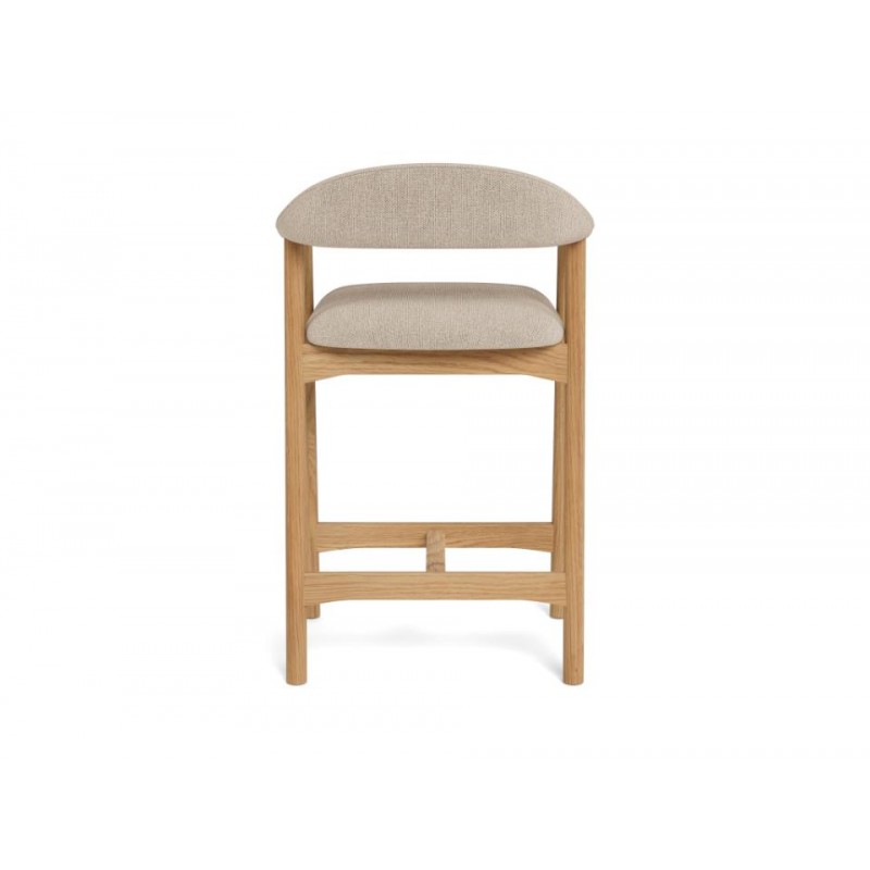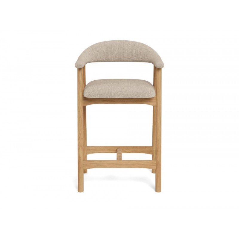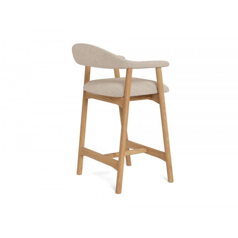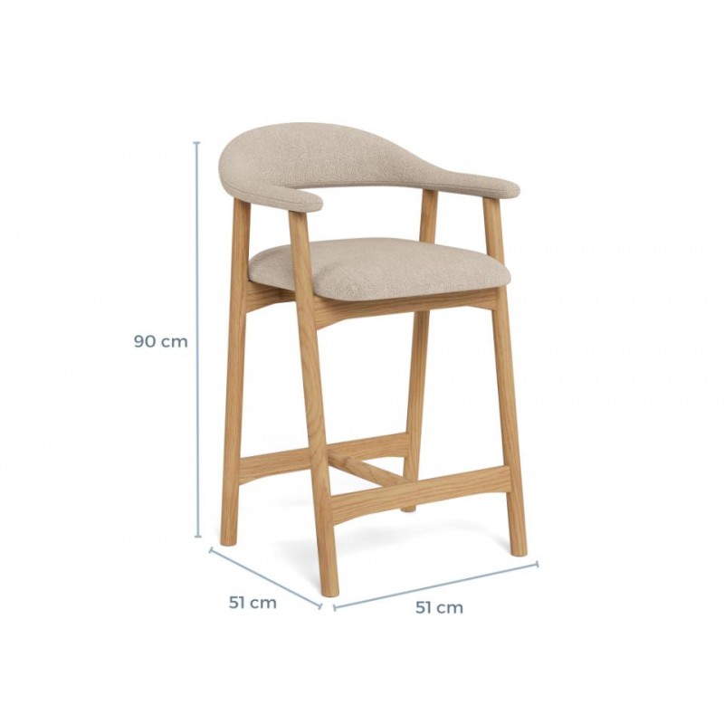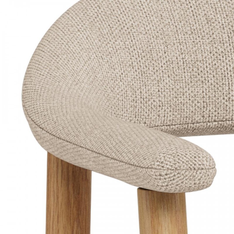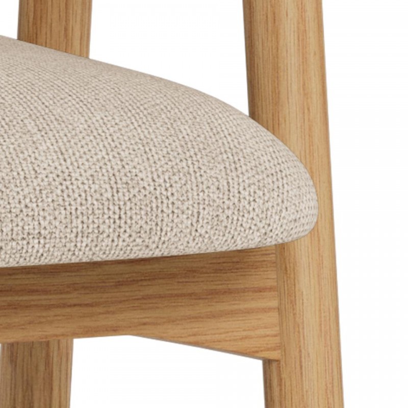 Hoker ADDI został zaprojektowany z myślą o wnętrzach w stylu nowoczesnym oraz skandynawskim, gdzie doda aranżacji charakteru i subtelnej elegancji, jednocześnie przyciągając uwagę swoją wyjątkową formą. Jego największym atutem jest idealnie wyprofilowane siedzisko, które wspiera prawidłową pozycję siedzącą i zapewnia wysoki komfort użytkowania, nawet przez dłuższy czas. Siedzisko zostało obite wysokiej jakości materiałem w kolorze beżowym, co podkreśla jego uniwersalny i ponadczasowy wygląd. Konstrukcję hokera tworzą cztery smukłe nogi wykonane z drewna dębowego, których naturalna kolorystyka doskonale komponuje się z tapicerowaną górą, nadając meblowi lekkości i wyrafinowanego charakteru. Hoker ADDI idealnie sprawdzi się przy wyspie kuchennej lub blacie barowym, łącząc estetykę z funkcjonalnością i zapewniając wygodę użytkowania na co dzień.