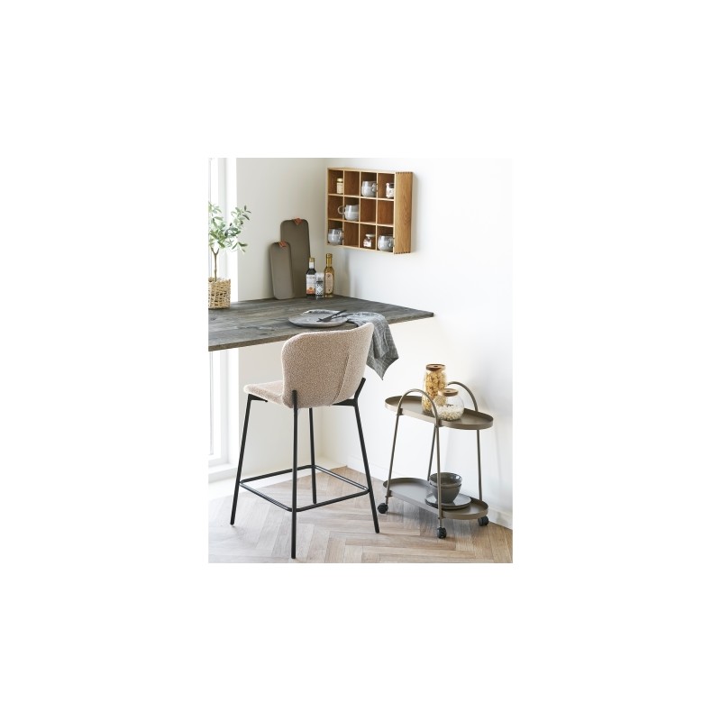 Hoker Maceda to idealne rozwiązanie do kuchni, jadalni lub wyspy kuchennej. Jego nowoczesna forma oraz tapicerka z modnej tkaniny boucle nadają wnętrzu przytulności i elegancji.