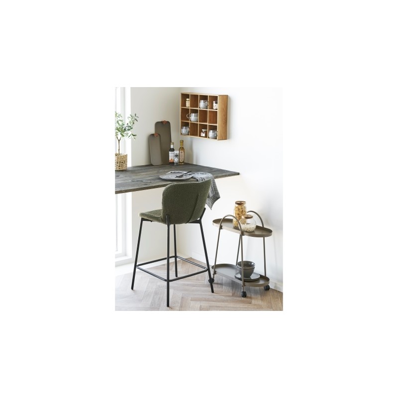 Hoker Maceda to idealne rozwiązanie do kuchni, jadalni lub wyspy kuchennej. Jego nowoczesna forma oraz tapicerka z modnej tkaniny boucle nadają wnętrzu przytulności i elegancji.