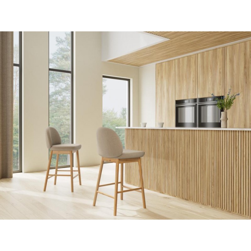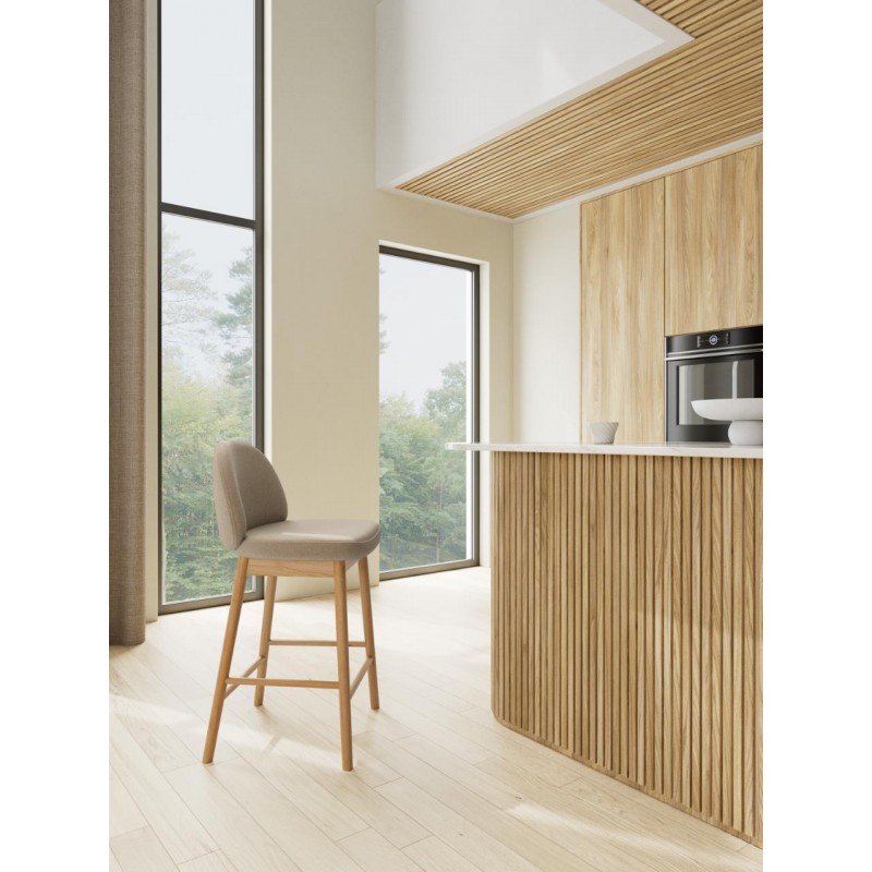 Stabilna konstrukcja opiera się na okrągłych nogach wykonanych z lakierowanego drewna dębowego, które podkreślają naturalny charakter hokera i zapewniają trwałość na lata. Praktyczny podnóżek zwiększa komfort siedzenia, umożliwiając wygodne podparcie stóp. Dzięki harmonijnemu połączeniu miękkich linii, wysokiej jakości materiałów i ponadczasowej formy, ten hoker doskonale odnajdzie się zarówno w nowoczesnych, jak i bardziej klasycznych aranżacjach wnętrz.