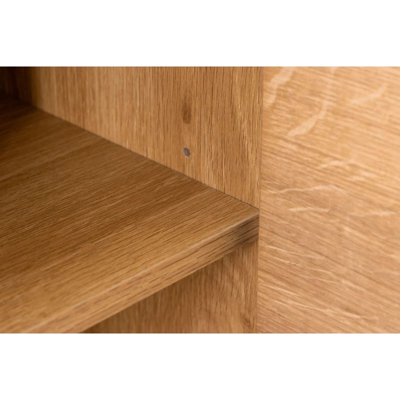 | Szczegóły wykończenia | na froncie zastosowano podłużne pionowe listwy dekoracyjne przypominające lamele, mebel wykonany jest z dużą precyzją, dzięki zachowaniu i odwzorcowaniu naturalnej oryginalności zarówno słojów jak i sęków |