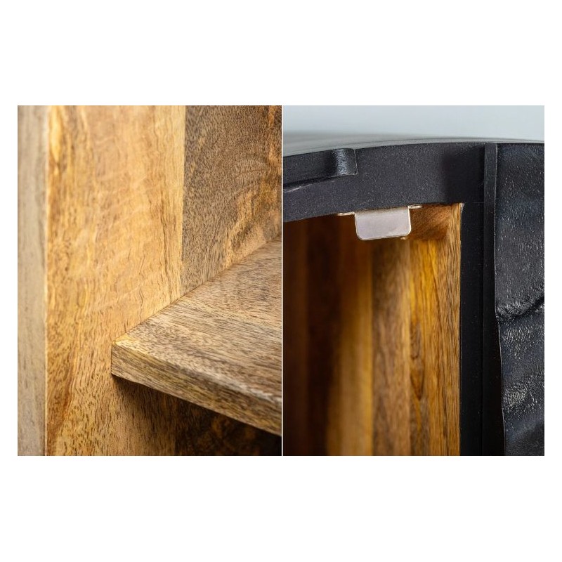KOMODA SCORPION 140X38 CM MANGO CZARNY Komoda Scorpion to mebel wykonany z drewna mango. Posiada pojemne półki, które pomieszczą książki oraz zastawę stołową. Przepiękne żłobienia na drzwiach frontowych niewątpliwie stanowią ciekawy, nietuzinkowy design. Wykonana z dużą precyzją będzie wspaniałym dodatkiem do każdego nowoczesnego jak i klasycznego...