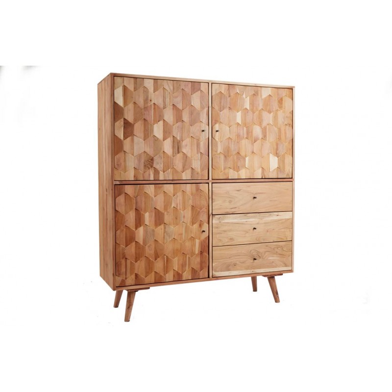Komoda Mystic Living to mebel wykonany z drewna akacjowego. Posiada pojemne półki oraz trzy szuflady, które pomieszczą książki czy zastawę stołową. Wykonana z dużą precyzją niewątpliwie będzie wspaniałym dodatkiem do każdego nowoczesnego jak i klasycznego wnętrza.