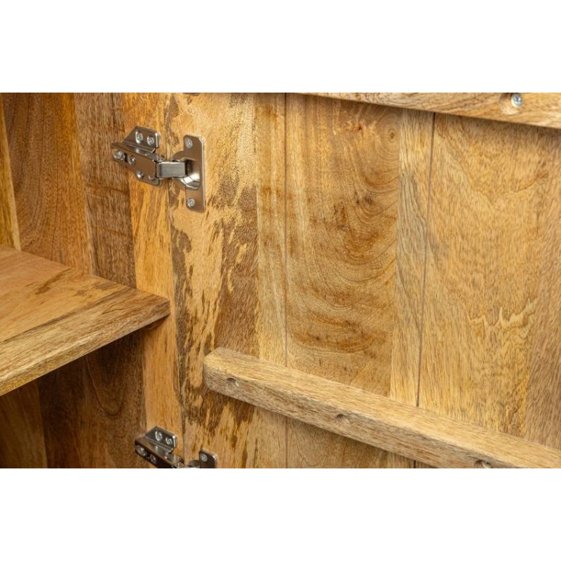 KOMODA SCORPION 140X38 CM MANGO Komoda Scorpion to mebel wykonany z drewna mango. Posiada pojemne półki, które pomieszczą książki czy zastawę stołową. Przepiękne żłobienia na drzwiach frontowych niewątpliwie stanowią ciekawy, nietuzinkowy design. Wykonana z dużą precyzją niewątpliwie będzie wspaniałym dodatkiem do każdego nowoczesnego jak i klasycznego...