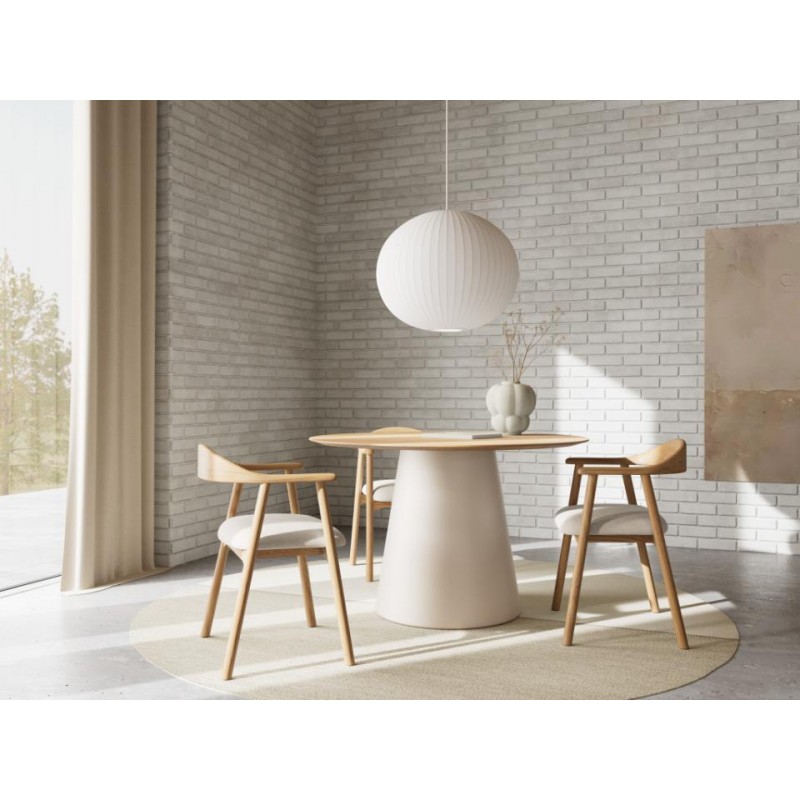 Odkryj nasze krzesło do jadalni Ven - elegancki mebel z bielonego dębu z beżową poduszką siedziska, idealny do stworzenia przyjaznej atmosfery wokół stołu jadalnego. Krzesło Ven zostało zaprojektowane tak, aby łączyć elegancję z wygodą, dzięki czemu jest idealnym wyborem na spotkania rodzinne i przyjaciół na relaksujące kolacje lub przyjemne chwile....
