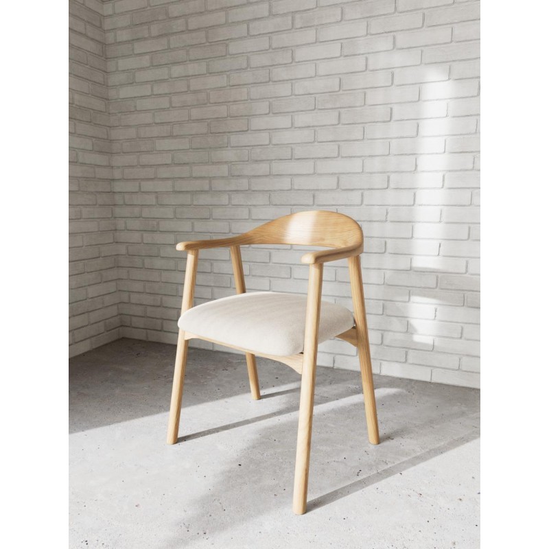 Krzesło ADDI zostało zaprojektowane z myślą o pomieszczeniach w stylu nowoczesnym czy skandynawskim, gdzie doda wnętrzu charakteru i spokojnego wyglądu, a także dzięki swojej niesamowitej formie przykuje uwagę każdego. Głównym atutem mebla jest jego idealnie wyprofilowane siedzisko, które wspiera pozycję siedzącego i zapewnia wygodę na wiele godzin, a zostało ono obite wysokiej jakości materiałem w kolorze beżowym. Konstrukcję mebla stanowią cztery, smukłe nogi wykonane z drewna dębowego, których kolor idealnie komponuje się z górą mebla i nadaje mu charakteru. Krzesło ADDI sprawdzi się idealnie w każdym salonie czy jadalni, gdzie doda przestrzeni charakteru i spokojnego wyglądu, a także dzięki swojej formie zapewni funkcjonalność i wygodę podczas użytkowania przez wiele godzin.