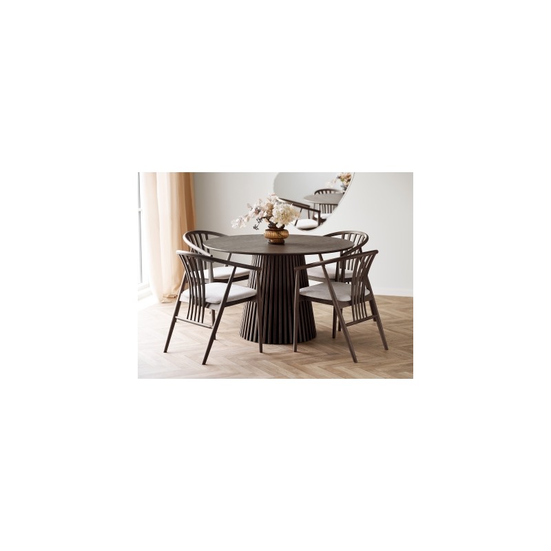 Krzesło Agustin to połączenie ponadczasowej elegancji i naturalnego stylu. Wykonane z dbałością o każdy detal, zachwyca prostą formą oraz ciepłym odcieniem dębu dymionego, który wprowadza do wnętrza przytulny, harmonijny klimat. Solidna konstrukcja z drewna gwarantuje trwałość i stabilność przez wiele lat użytkowania. Delikatnie profilowane oparcie zapewnia komfort siedzenia, a subtelne linie i gładkie wykończenie podkreślają nowoczesny, a zarazem klasyczny charakter mebla.Krzesło Agustin doskonale sprawdzi się w jadalni, kuchni lub salonie urządzonym w stylu skandynawskim, nowoczesnym czy rustykalnym. Jego uniwersalna forma sprawia, że z łatwością dopasuje się do różnych aranżacji.