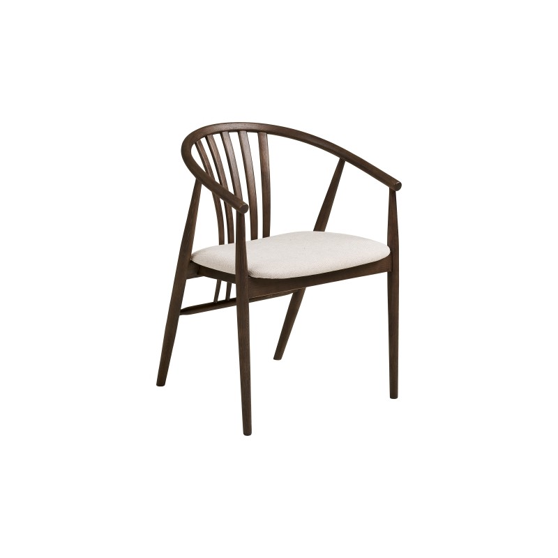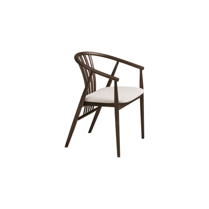 Krzesło do jadalni, drewno dębowe z siedziskiem z tkaniny beżowej, kolor dąb dymiony HN1286