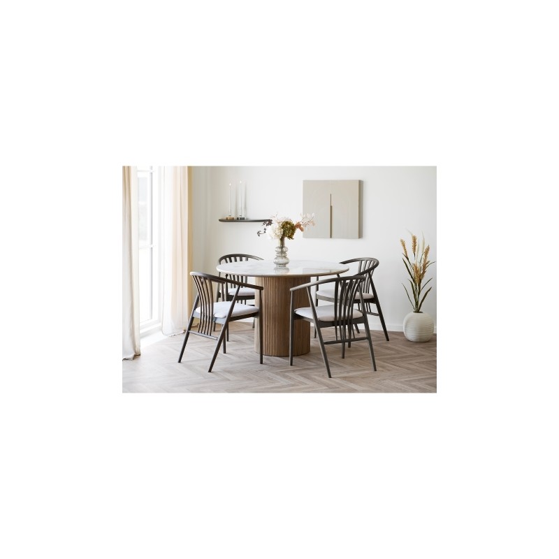 Umebluj serce domu stylowo i zachęcająco! Malmön to klasyczne krzesło do jadalni w kolorze szarego beżu, z oparciem z drewna greige i siedziskiem z wytrzymałej beżowej liny oraz lekko rozszerzonymi nogami z metalu. To krzesło o tradycyjnym, skandynawskim wzornictwie nadaje Twojemu domowi nowoczesny charakter i jest łatwe do przenoszenia. Dopasuj krzesło...