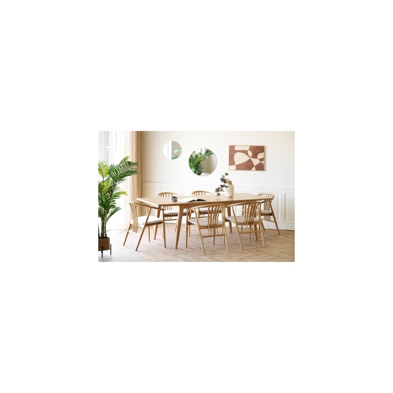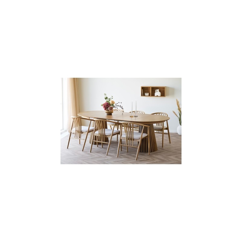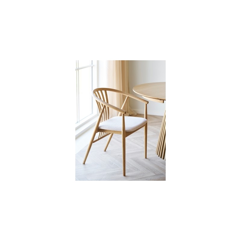 Odkryj nasze krzesło do jadalni Ven - elegancki mebel z bielonego dębu z beżową poduszką siedziska, idealny do stworzenia przyjaznej atmosfery wokół stołu jadalnego. Krzesło Ven zostało zaprojektowane tak, aby łączyć elegancję z wygodą, dzięki czemu jest idealnym wyborem na spotkania rodzinne i przyjaciół na relaksujące kolacje lub przyjemne chwile....