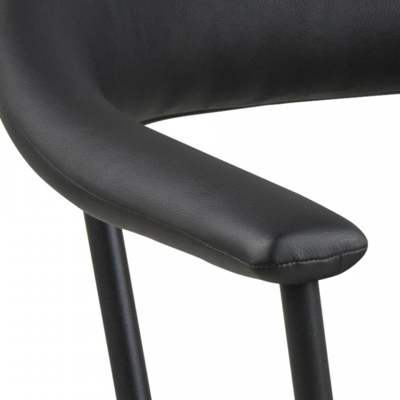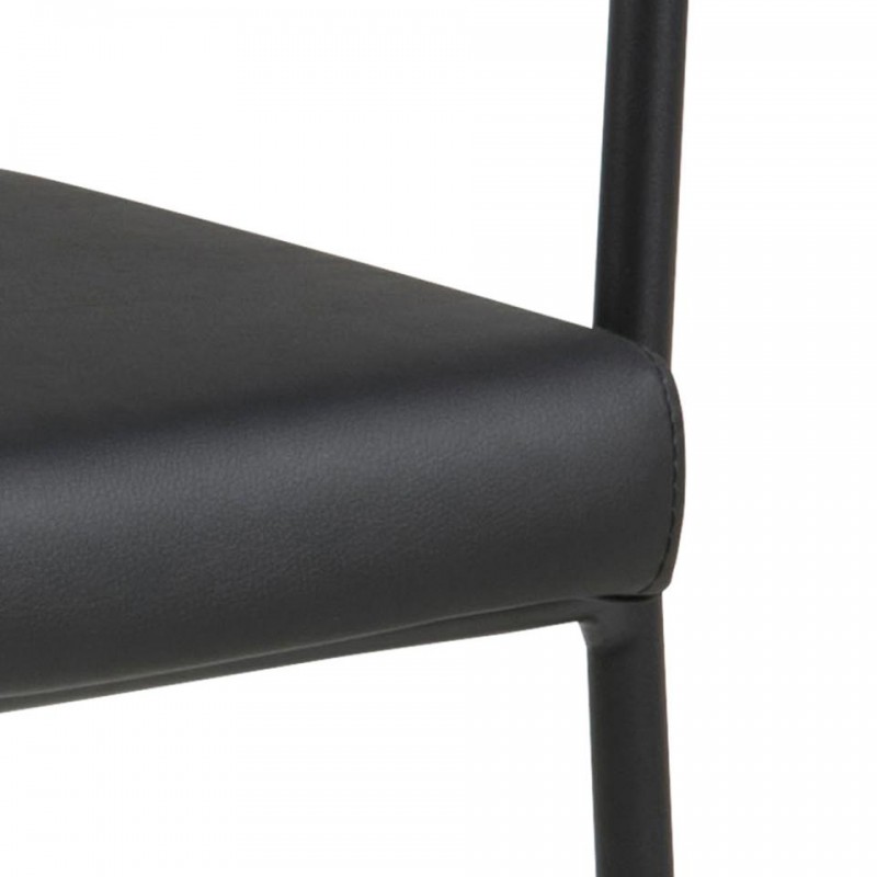 Krzesło do jadalni Slim ma wysokie oparcie w pełni nowoczesnym wzornictwie. Oparcie i siedzisko z czarnej sztucznej skóry z ozdobnymi szwami po wewnętrznej stronie oparcia i siedziska, które tworzą wzór w paski, z wyściółką. Nogi są z czarnego metalu malowanego proszkowo. Tutaj Ty i Twoi goście możecie wygodnie siedzieć godzinami! Wymagany jest montaż....