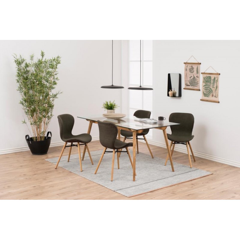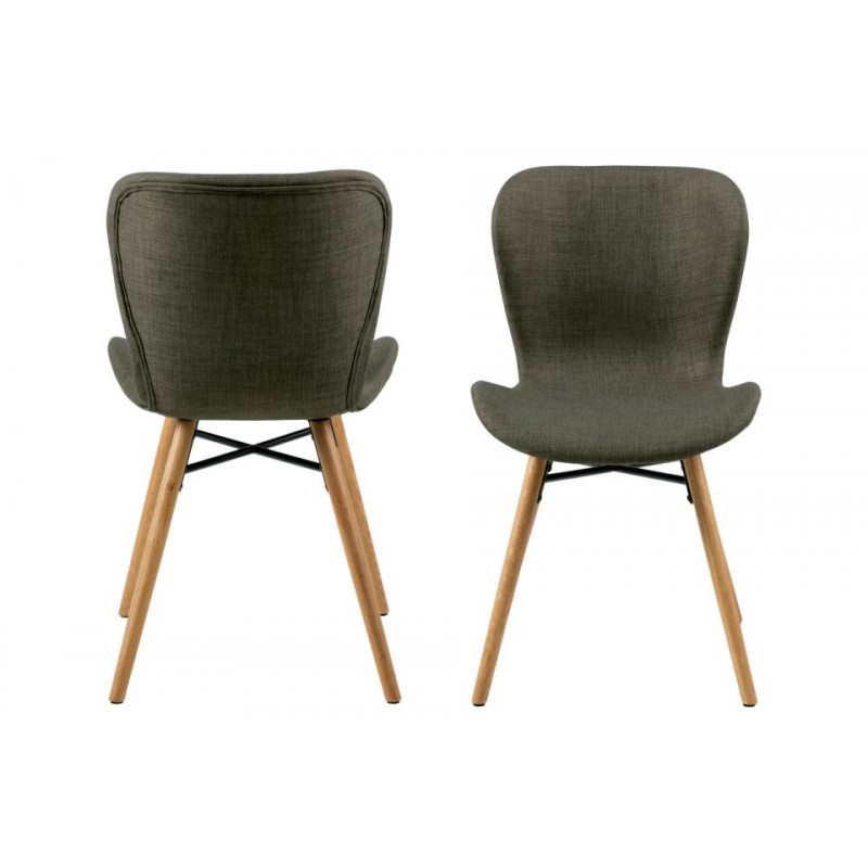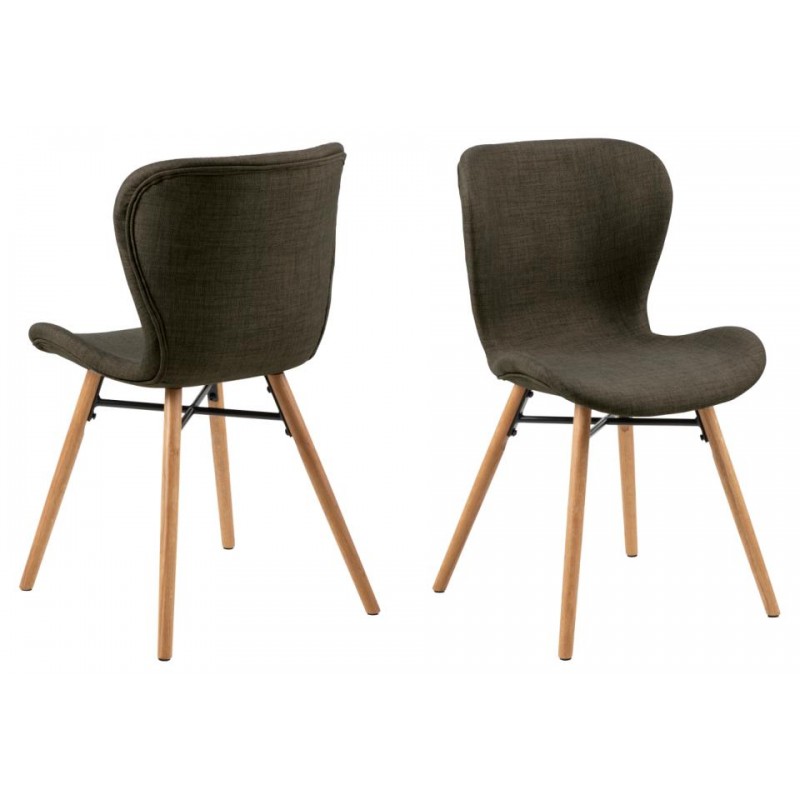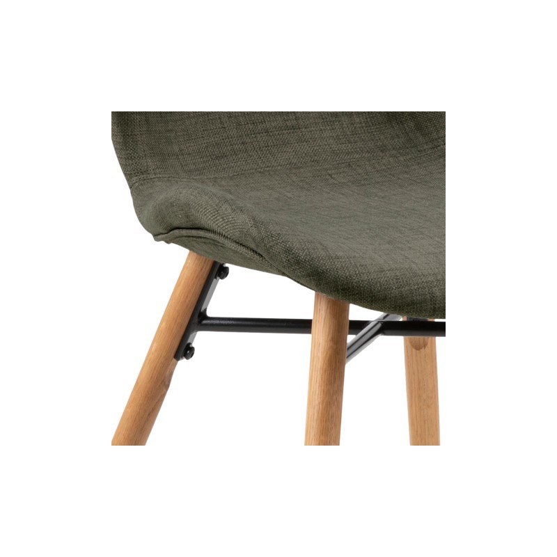 Krzesło tapicerowane z wyprofilowanym oparciem gwarantuje wygodne miejsce do siedzenia i stylowy element wyposażenia nowoczesnego wnętrza na długie lata. Niezwykle komfortowe krzesło do stołu kuchennego, wykonane zostało z tkaniny w odcieniach zielonych oraz drewnianej podstawy połączonej czarnym elementem metalowym. Tkanina w kolorze khaki w połączeniu z drewnianymi nogami, prezentuje się bardzo elegancko i nowocześnie. Krzesło doskonale sprawdzi się zarówno w domowych kuchniach, salonach, jak również przestrzeniach biurowych.