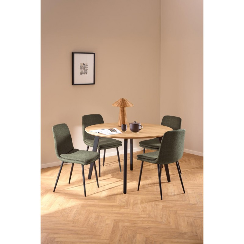 Krzesło Becca wyróżnia się prostą jednocześnie stylową formą, przez co świetnie odnajdzie się w nowoczesnych jadalniach. Jego charakterystyczna konstrukcja siedziska wraz z dodatkową poduszką tapicerowaną w odcieniach zieleni czyni go bardziej interesującym. Ważnym elementem mebla jest wyprofilowane oparcie oraz siedzisko, które odpowiednio wspierają sylwetkę siedzącego podczas jego użytkowania. Na jego stabilną metalową czarną podstawę składają się smukłe ciemne nogi, które dopełniają w całości jego wyjątkowy wygląd. Krzesło to stworzone zostało głównie z myślą o użytkownikach ceniących sobie funkcjonalność oraz stylowe wykończenie. Efekt końcowy połączenia jasnych kolorów siedziska oraz metalowej ciemnej podstawy jest fenomenalny, dzięki czemu idealnie sprawdzi się zarówno w salonach jak i jadalniach w stylu klasycznym oraz nowoczesnych.