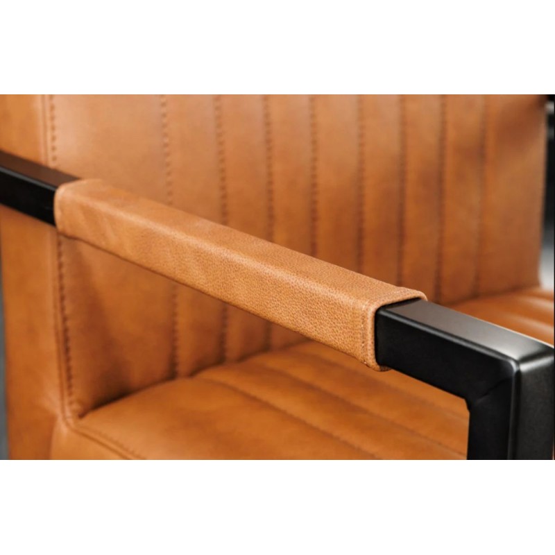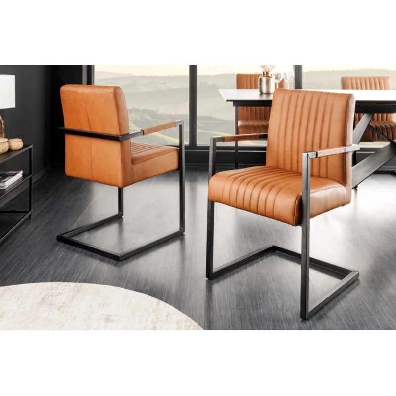 Nowoczesne krzesło BIG ASTON to funkcjonalne i stylowe rozwiązanie, które doskonale odnajdzie się zarówno w eleganckiej jadalni, jak i w salonie. Jego siedzisko wykonano z wysokiej jakości naturalnej skóry w modnym kolorze brandy w odcieniu brązowym, wyróżniającej się pięknym i starannym wykończeniem wewnątrz mebla. Ozdobne pionowe przeszycia nadają mu wyjątkowej elegancji, czyniąc go prawdziwą ozdobą każdego wnętrza. Stabilna, metalowa podstawa w czarnym kolorze dodatkowo podkreśla praktyczny jego charakter. Nowoczesny design wraz z podłokietnikami podkreślają jego oryginalne linie, subtelne zdobienia oraz smukła ciemna podstawa, harmonijnie łączy się z wygodnym siedziskiem i odpowiednio wyprofilowanym oparciem. Krzesło BIG ASTON, został wykonany z materiałów najwyższej jakości, zapewniając przy tym wyjątkowy komfort siedzenia oraz ekskluzywny wygląd. Dzięki ergonomicznemu oparciu i siedzisku doskonale wspiera sylwetkę podczas jego użytkowania. Model ten idealnie wpasuje się w nowoczesne aranżacje, dodając pomieszczeniom nie tylko elegancji i funkcjonalności, ale także odrobinę luksusu.