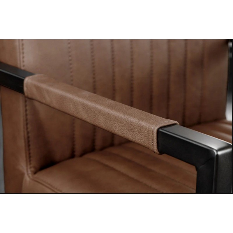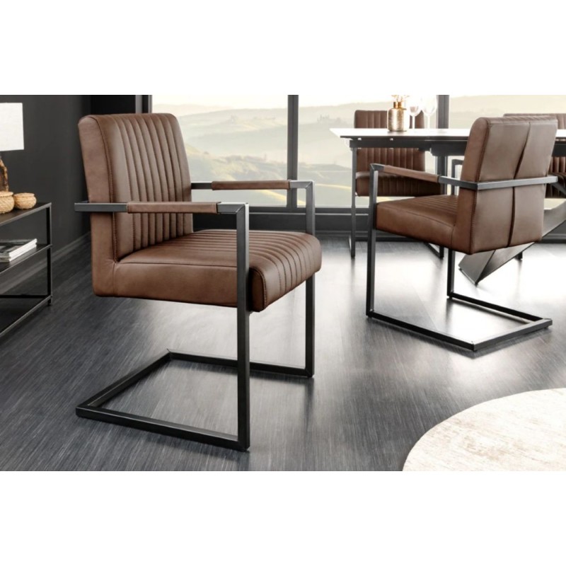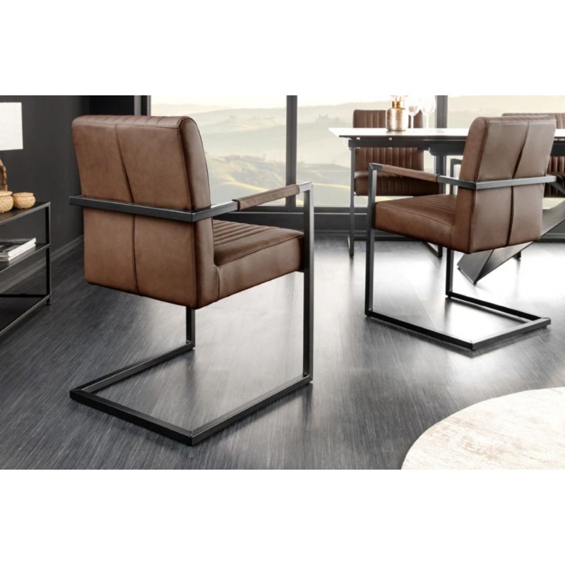 Nowoczesne krzesło BIG ASTON to funkcjonalne i stylowe rozwiązanie, które doskonale odnajdzie się zarówno w eleganckiej jadalni, jak i w salonie. Jego siedzisko wykonano z wysokiej jakości naturalnej skóry w modnym kolorze vintage w odcieniu brązowym, wyróżniającej się pięknym i starannym wykończeniem wewnątrz mebla. Ozdobne pionowe przeszycia nadają mu wyjątkowej elegancji, czyniąc go prawdziwą ozdobą każdego wnętrza. Stabilna, metalowa podstawa w czarnym kolorze dodatkowo podkreśla praktyczny jego charakter. Nowoczesny design wraz z podłokietnikami podkreślają jego oryginalne linie, subtelne zdobienia oraz smukła ciemna podstawa, harmonijnie łączy się z wygodnym siedziskiem i odpowiednio wyprofilowanym oparciem. Krzesło BIG ASTON, został wykonany z materiałów najwyższej jakości, zapewniając przy tym wyjątkowy komfort siedzenia oraz ekskluzywny wygląd. Dzięki ergonomicznemu oparciu i siedzisku doskonale wspiera sylwetkę podczas jego użytkowania. Model ten idealnie wpasuje się w nowoczesne aranżacje, dodając pomieszczeniom nie tylko elegancji i funkcjonalności, ale także odrobinę luksusu.