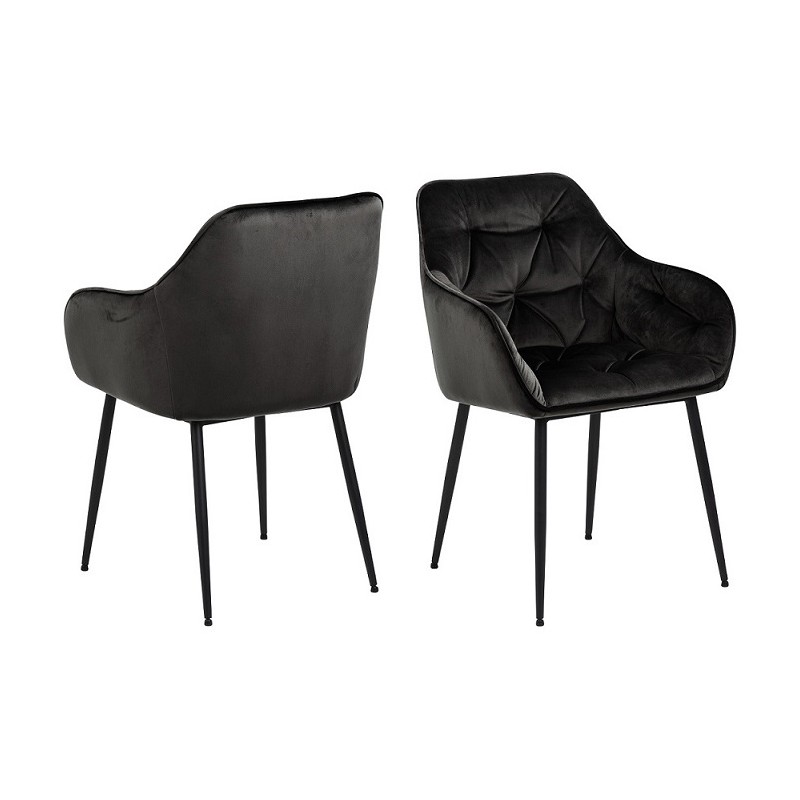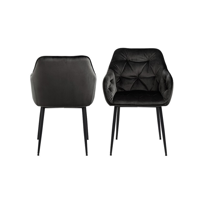 Wytrzymałe i aksamitne krzesło do jadalni, które przyciąga wzrok i zachwyca zarówno komfortem, jak i stylem! Luksusowe krzesło Windu ma spójny czarny design z prostymi nordyckimi formami. Krzesło jest wykonane z czarnego aksamitu i tkaniny poliestrowej, a nogi krzesła są lekko rozszerzone z żelaza. Dopasuj je do wystawnego stołu jadalnego, aby stworzyć...
