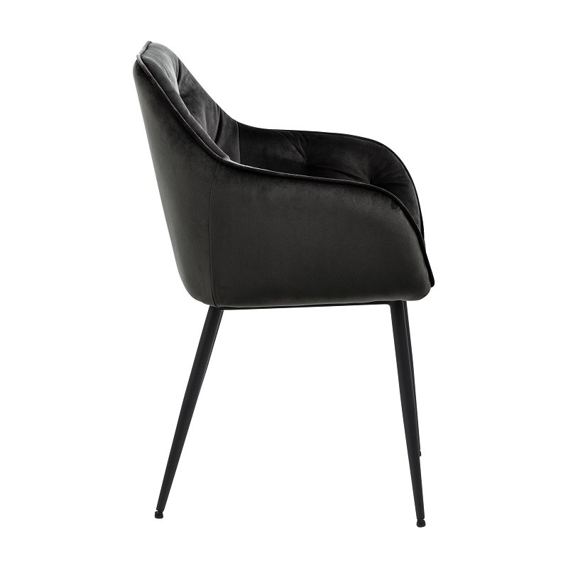 Wysokie oparcie i wygodne podłokietniki zapewniają komfort użytkowania na długi czas. Ponadto wysoka jakość materiałów z których to krzesło zostało wykonane zapewni wygodne miejsce do siedzenia i stylowy element wyposażenia każdego domu na długie lata. Szara kolorystyka w połączeniu z metalowymi nogami prezentuje się niezwykle elegancko i pasuje do wielu nowoczesnych salonów jak również pomieszczeń biurowych.