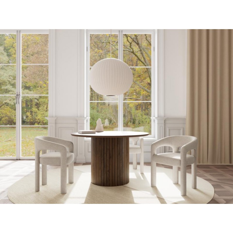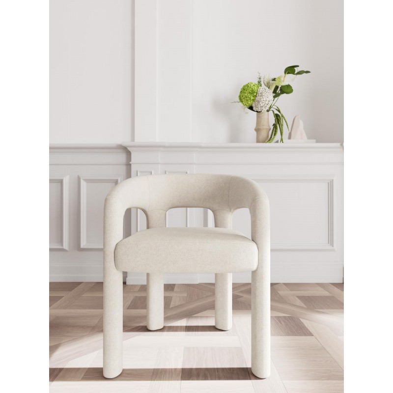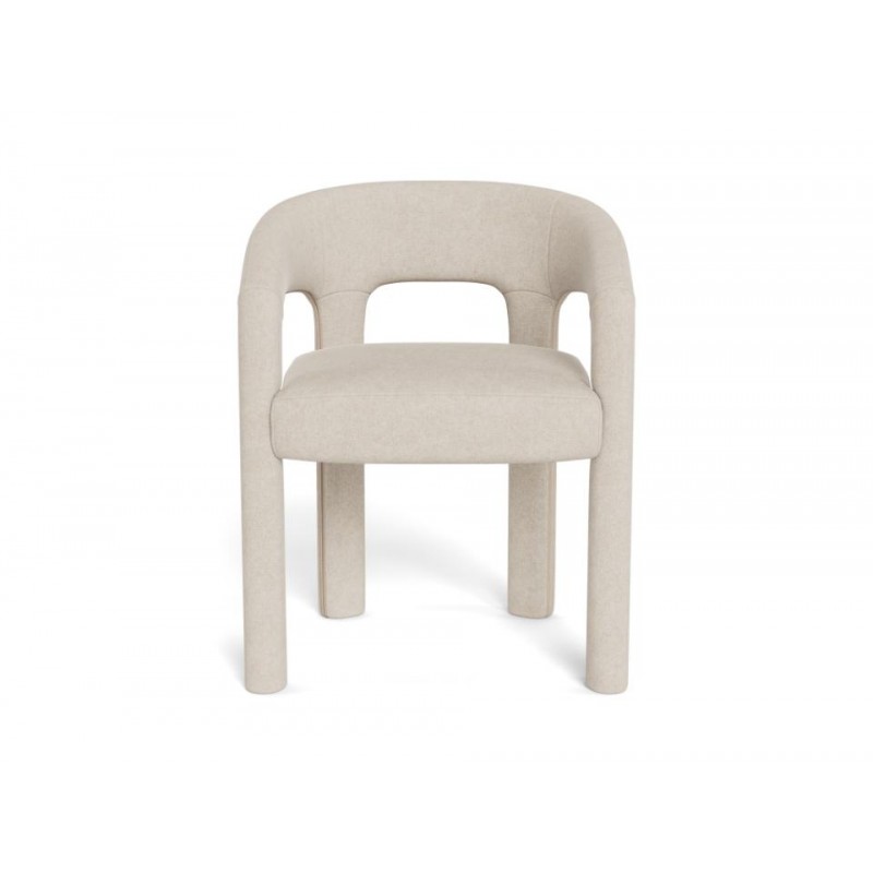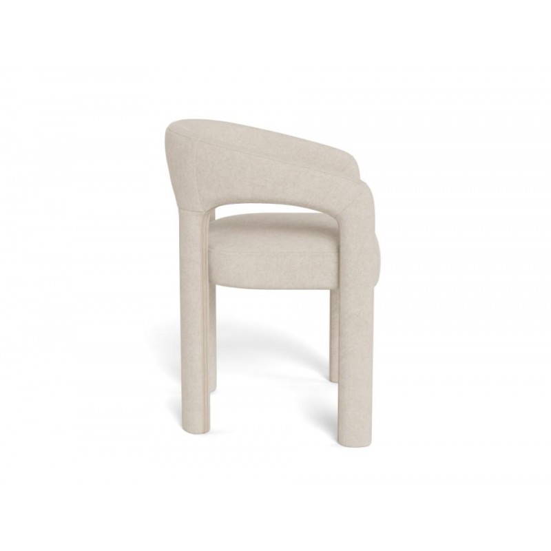 To krzesło jadalniane w beżowym kolorze łączy w sobie elegancję i wyjątkowy komfort użytkowania. Wyposażone w podłokietniki oraz tapicerowane nowoczesną tkaniną z przędzy szenilowej, zachwyca miękką fakturą i przyjemnym w dotyku wykończeniem. Zastosowanie sprężyn kieszeniowych w siedzisku zapewnia wysoki komfort siedzenia i doskonałe podparcie, nawet podczas dłuższych spotkań przy stole. Uniwersalna forma i stonowana kolorystyka sprawiają, że krzesło z łatwością dopasuje się do każdego stołu i aranżacji jadalni, dodając jej wyrafinowanego charakteru.