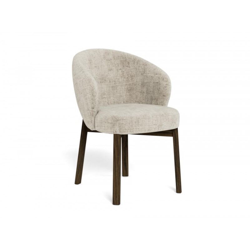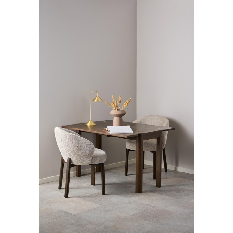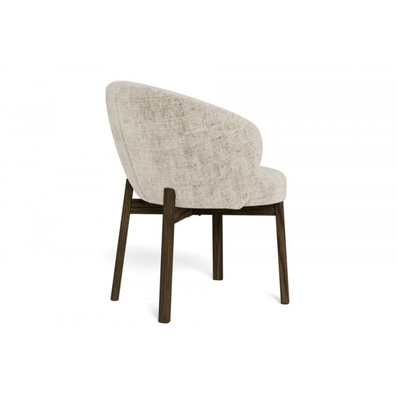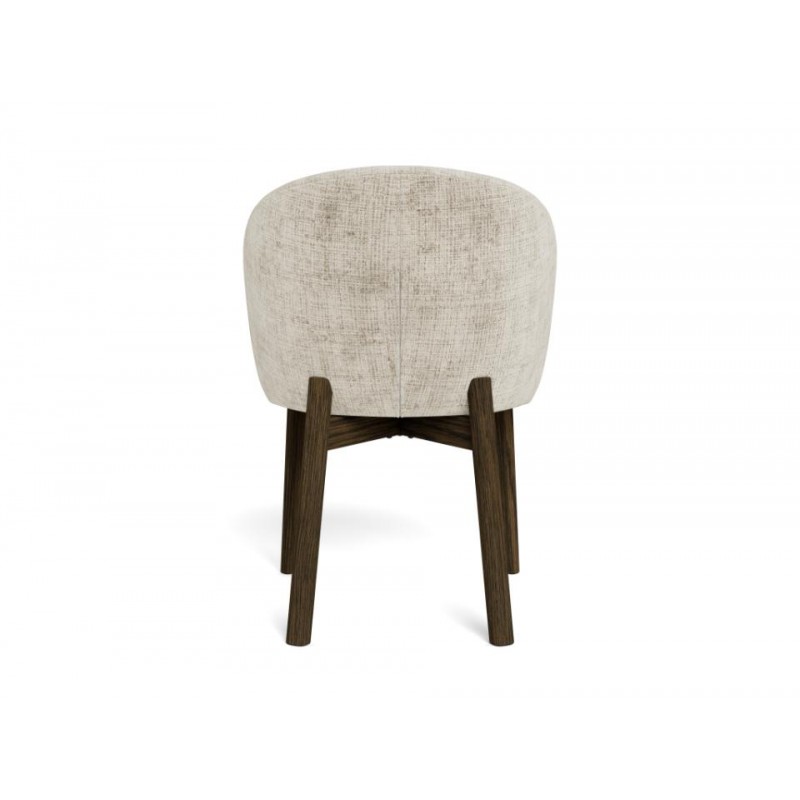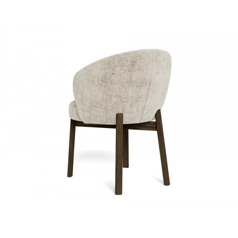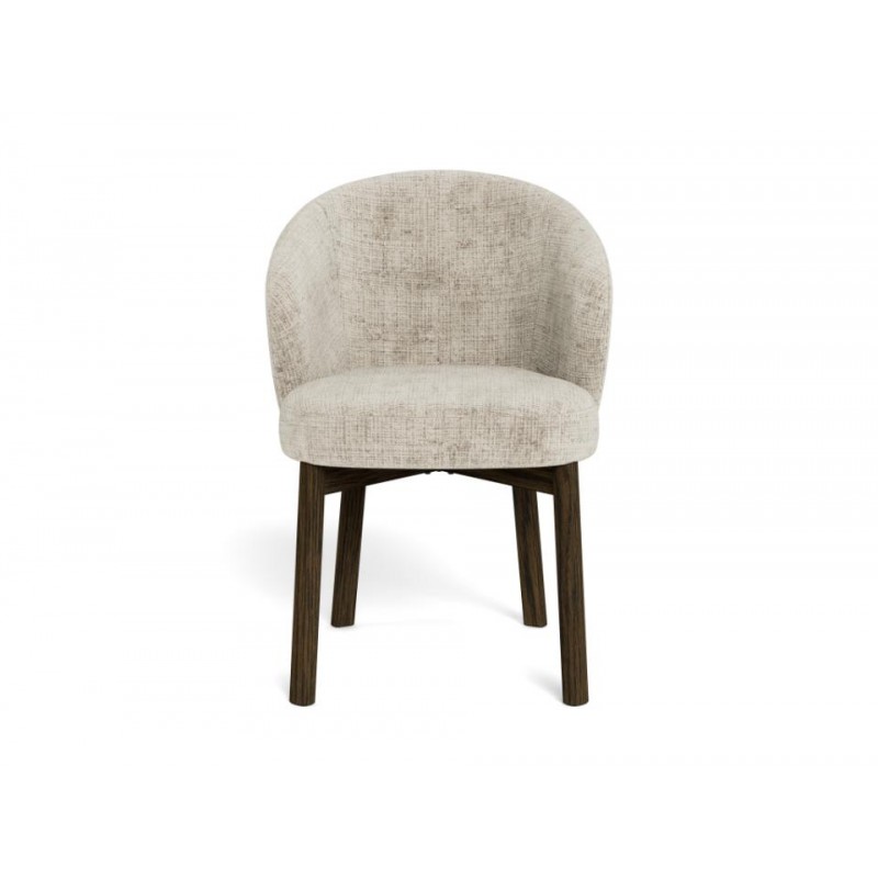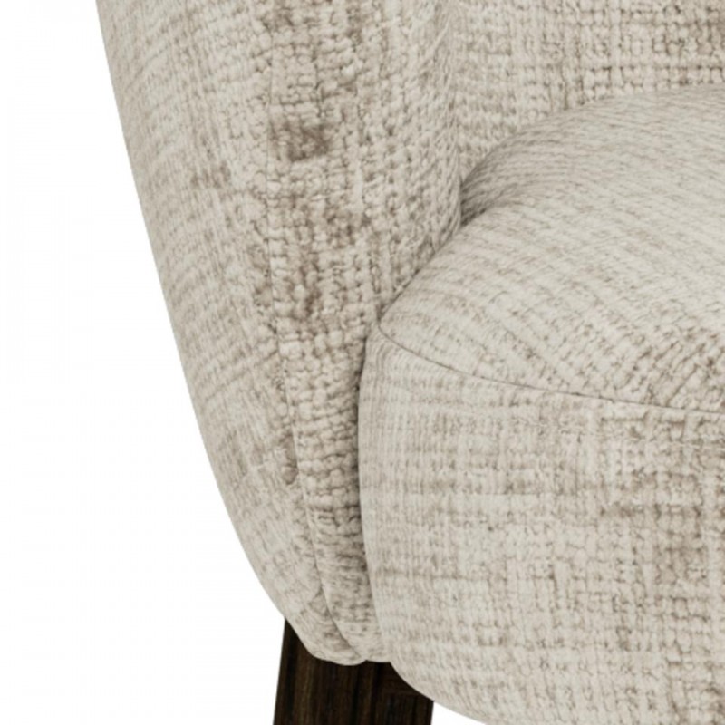 Krzesło do jadalni Darlene z podłokietnikiem, tkanina Juto beżowa 4 FR, podstawa matowa, lakierowany dąb przydomiony z przeszyciami i sprężynami kieszeniowymi.