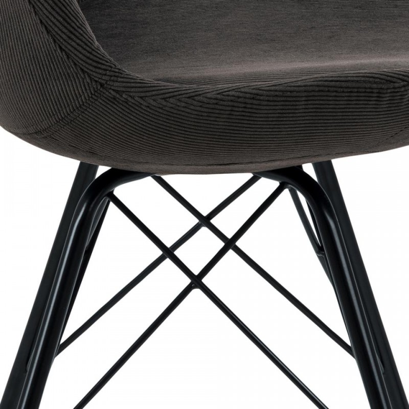 Korpus krzesła typowy dla stylu skandynawskiego został przełamany nowoczesną, metalową konstrukcją. Tkanina prążkowana z której to krzesło zostało wykonane prezentuje się bardzo elegancko i nowocześnie, jest przyjemna w dotyku i łatwa w utrzymaniu czystości.