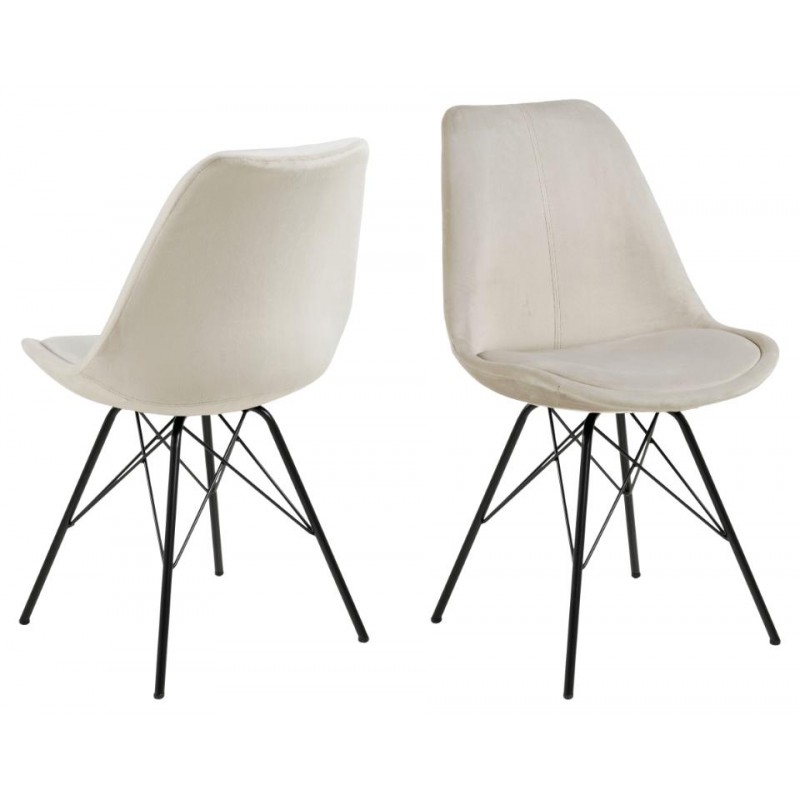 Korpus krzesła typowy dla stylu skandynawskiego został przełamany nowoczesną, metalową konstrukcją. Tkanina welurowa z której to krzesło zostało wykonane prezentuje się bardzo elegancko, jest przyjemna w dotyku i łatwa w utrzymaniu czystości.