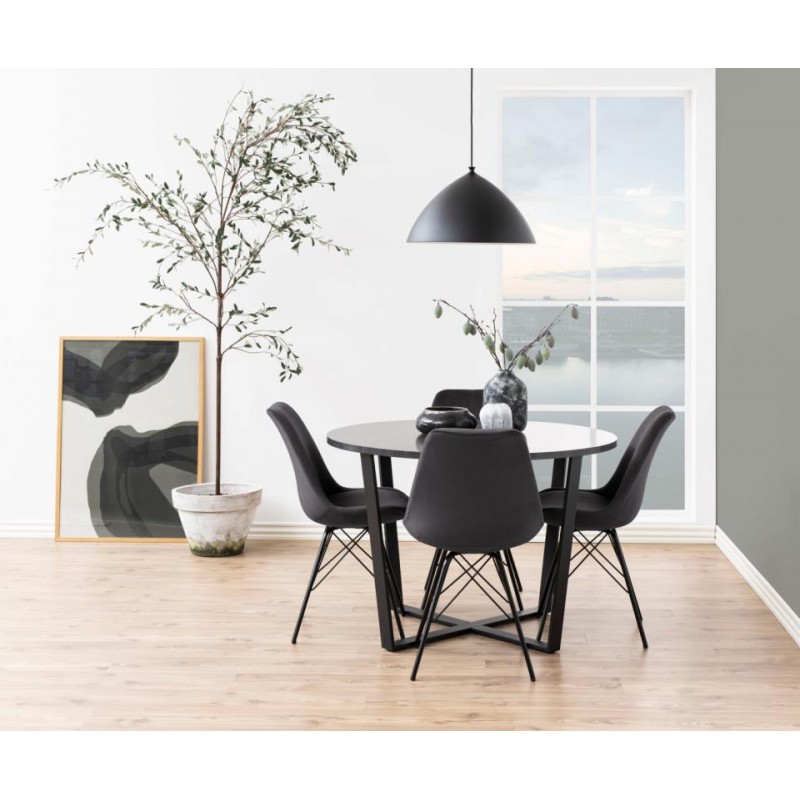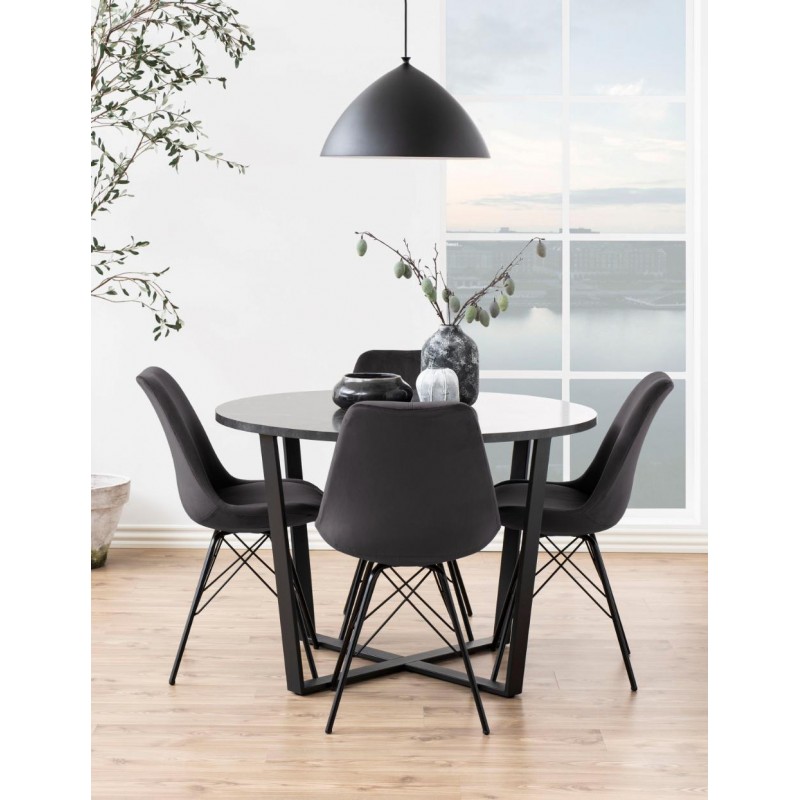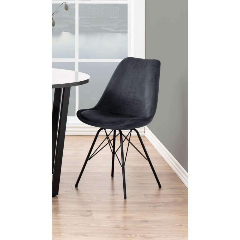 Korpus krzesła typowy dla stylu skandynawskiego został przełamany nowoczesną, metalową konstrukcją. Dzięki welwetowemu obiciu w różnej gamie kolorystycznej całość stanowi kultowy element wystroju wnętrz.