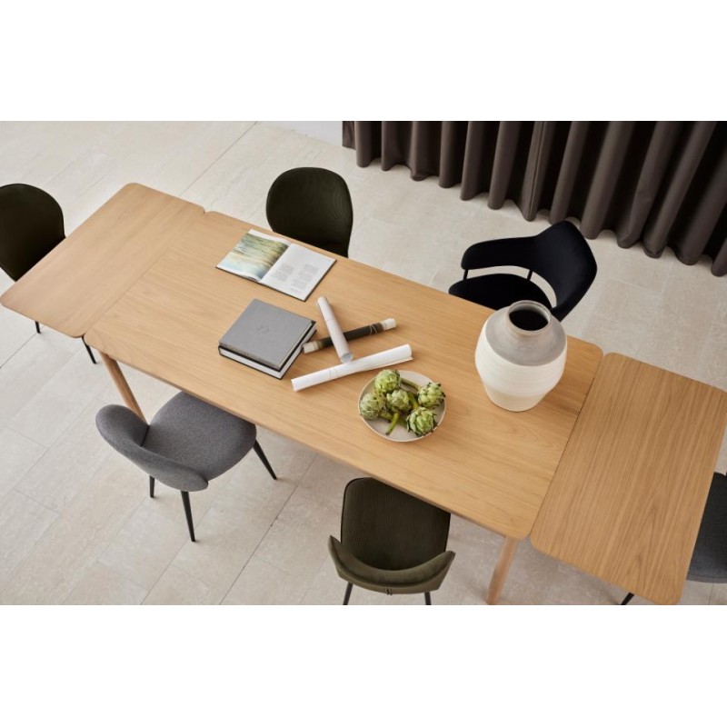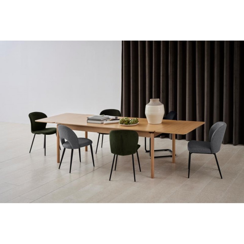 Krzesło wszystkich modnych guru wnętrzarskich już teraz! Krzesło do jadalni Långön zachwyca skandynawskim wzornictwem, wykończeniem w kolorze dębu i miękkimi, okrągłymi kształtami. Krzesło ma zintegrowane podłokietniki i lekko rozszerzone nogi z ectrine oraz szare siedzisko z aksamitnej tkaniny, która zapewnia miękkie i zachęcające wrażenie do ogólnego...