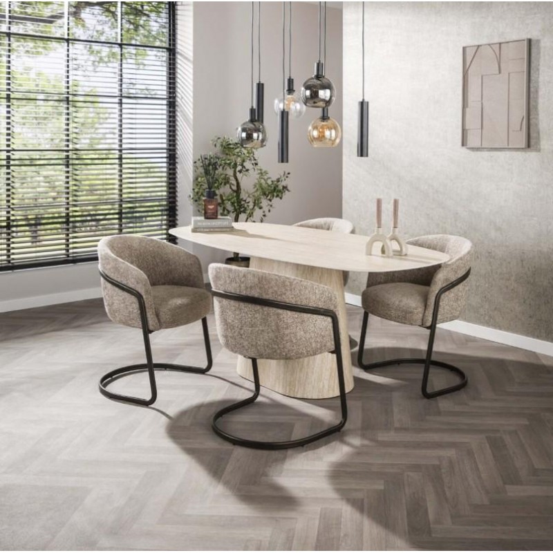 Nowoczesne krzesło HARPER to mebel posiadający wiele korzyści w jednym produkcie, który bez wątpienia zachwyci swoim kształtem. Już na pierwszy rzut oka zachwyca swoją formą i precyzyjnym wykończeniem. Ponadto charakterystyczną jego cechą jest zastosowanie w nim sprężyn kieszeniowych typu pocket wewnątrz siedziska, dzięki czemu efekt końcowy połączenia beżowego korpusu siedziska wraz z ciemną metalowa podstawą jest fenomenalny nadając całości niezwykle wyjątkowy design. Mebel ten wyróżnia się nie tylko wyglądem, ale również idealnie wyprofilowanym oparciem, podłokietnikami oraz siedziskiem, które zostały zaprojektowane tak, aby dopasowywać się do sylwetki użytkownika, zapewniając wygodę oraz komfort podczas jego użytkowania. Oryginalna forma oraz modna tkanina o plecionej gramaturze w kolorze beżowym nadają meblowi niezwykle efektowny i nowoczesny wygląd, a jej strukturalna faktura dodaje mu głębi i oryginalności. To właśnie ten detal czyni każdy egzemplarz niezwykle eleganckim, dzięki czemu doskonale odnajdzie się zarówno w klasycznych, jak i nowoczesnych wnętrzach jadalni oraz salonu, dodając przestrzeni niezwykle wyrazistego stylu.