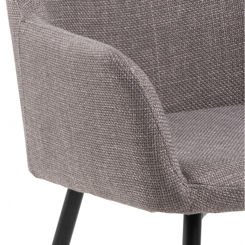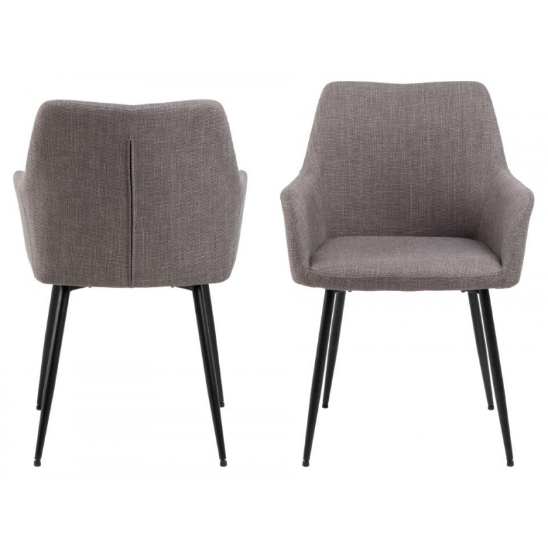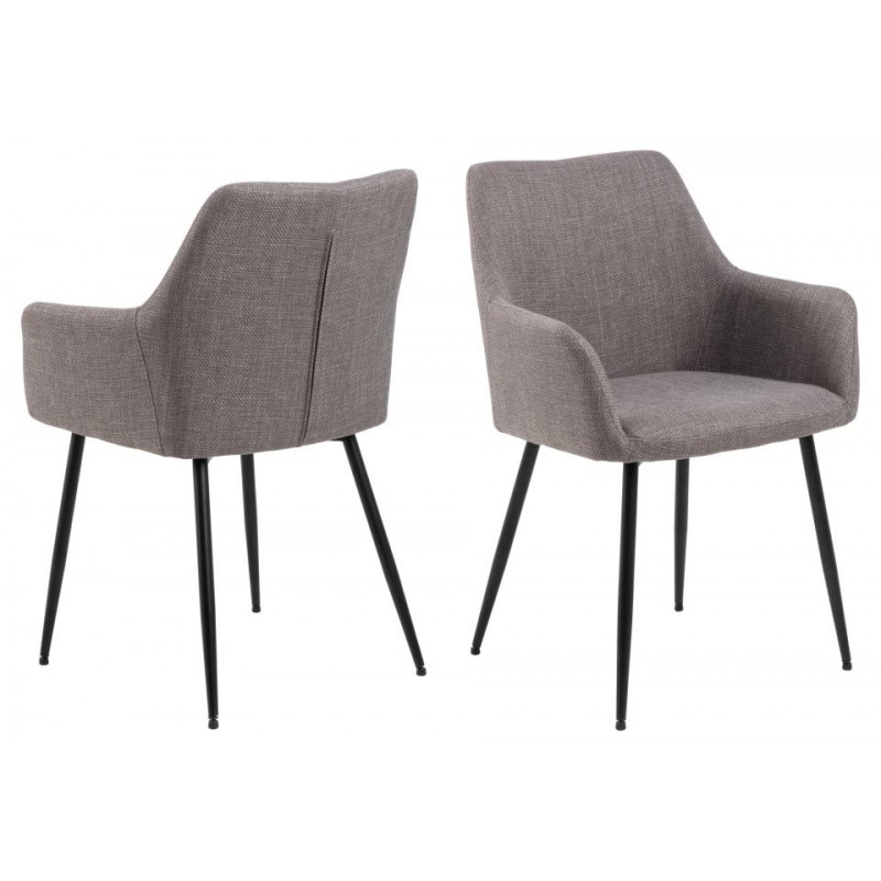 Krzesło do stołu kuchennego wykonane zostało w nowoczesnej, szaro-brązowej tkaninie plecionej. Wyprofilowane, wysokie oparcie i wygodne podłokietniki zapewniają wysoki komfort użytkowania na długi czas. Krzesło do jadalni z wysokiej jakości materiałów, gwarantuje wygodne miejsce do siedzenia i stylowy element wyposażenia Twojego domu na długie lata.