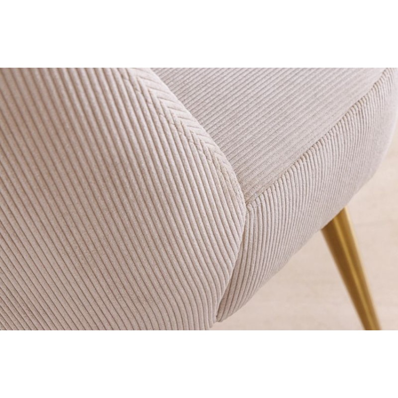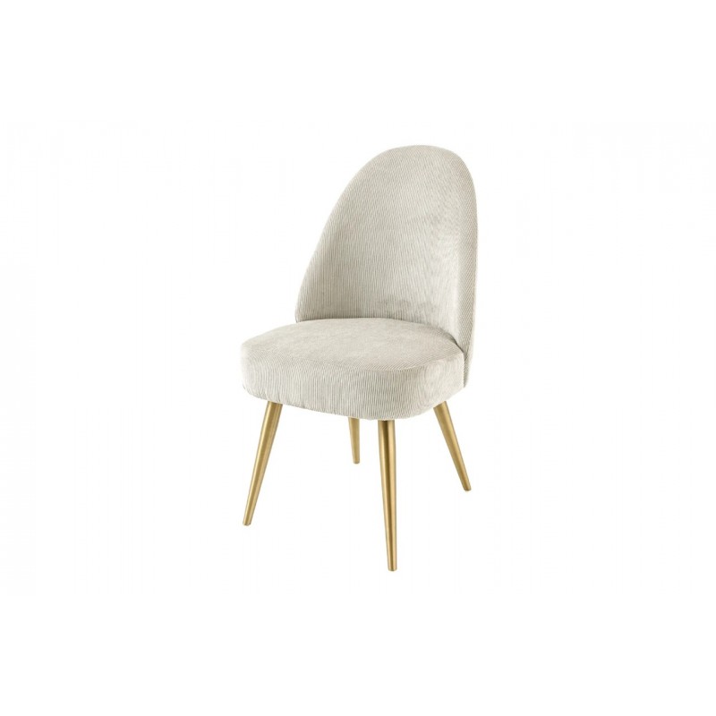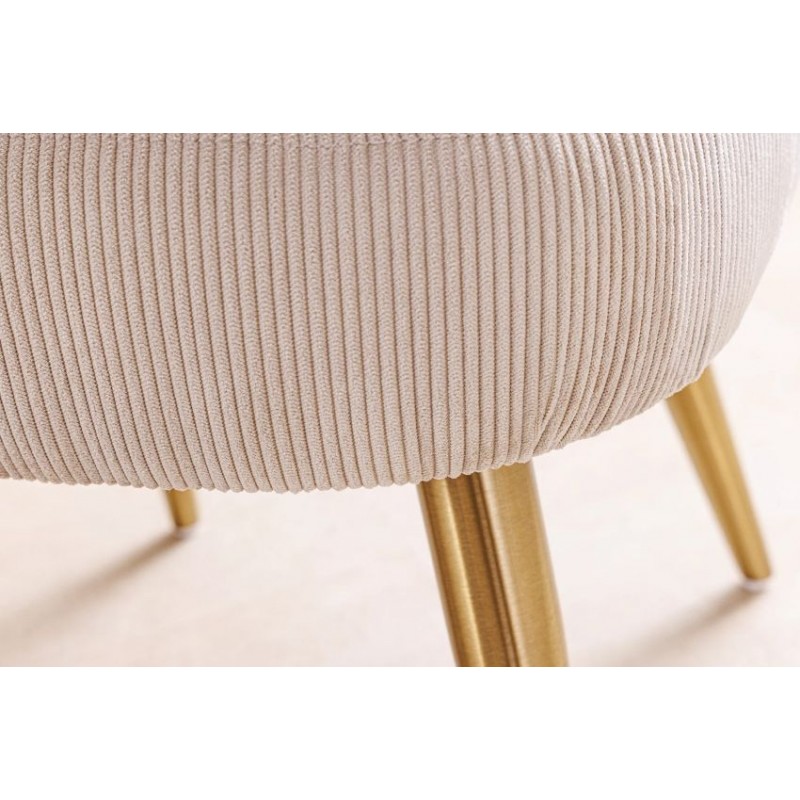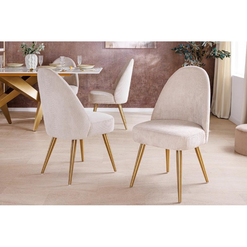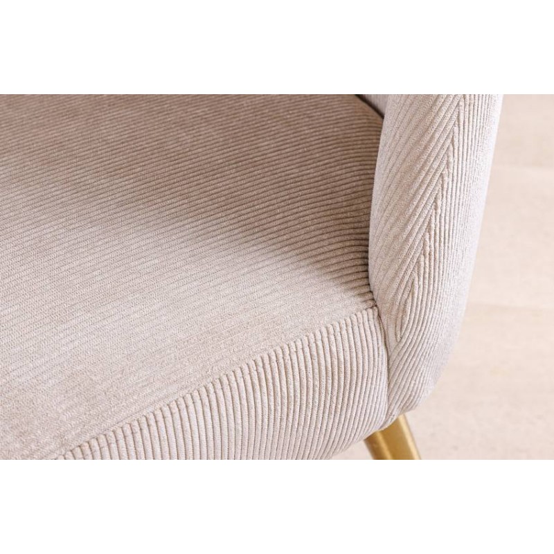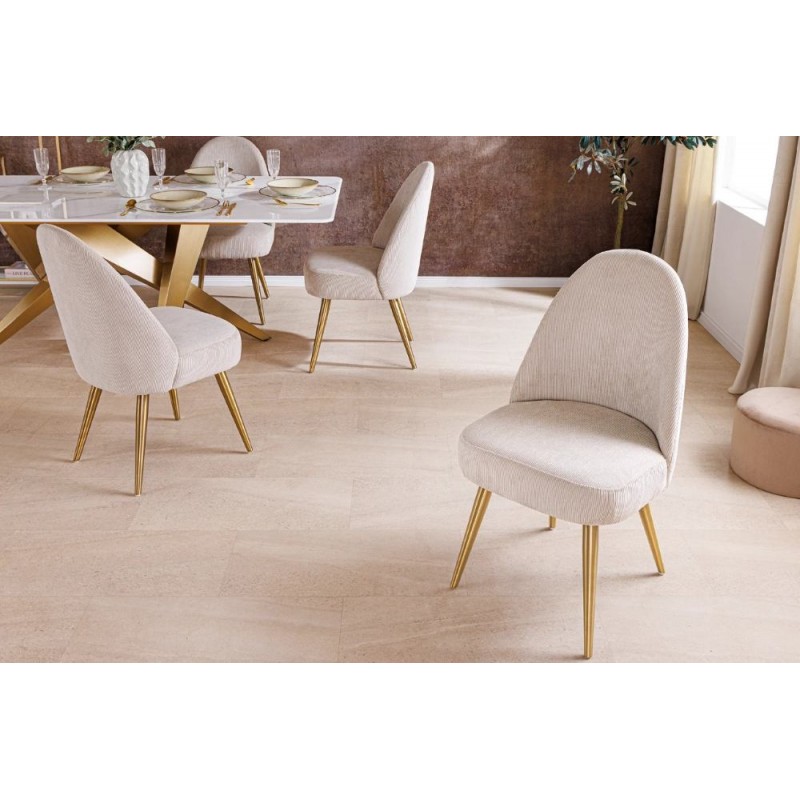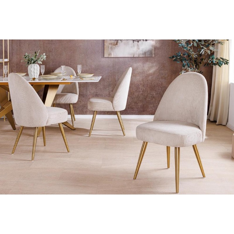 Krzesło MIA CASA to propozycja dla tych, którzy chcą nadać swojemu wnętrzu trochę wyrafinowania oraz elegancji. Wysokie siedzisko obite zostało modną sztruksową tkaniną w kolorze beżowym, którego wyjątkowy charakter bez wątpienia podkreśla gramatura prążkowanej tapicerki. Ponadto niezwykły komfort na długi czas zapewnia wyprofilowane oparcie oraz siedzisko, które wspiera odpowiednio sylwetkę siedzącego podczas użytkowania. Jego stabilną metalową podstawę w kolorze złotym stanowią smukłe nogi, które idealnie dopełniają w całości jego wyjątkowy wygląd. Krzesło to stworzone zostało głównie z myślą o użytkownikach ceniących sobie funkcjonalność oraz stylowe wykończenie. Efekt końcowy połączenia beżowego koloru siedziska oraz metalowej złotej podstawy jest fenomenalny, dzięki czemu doskonale odnajdzie się w stylu nowoczesnym oraz glamour. Krzesło MIA CASA znakomicie uzupełni Twoje przestronne wnętrze pozwalając się cieszyć elegancją oraz relaksem każdego dnia.
