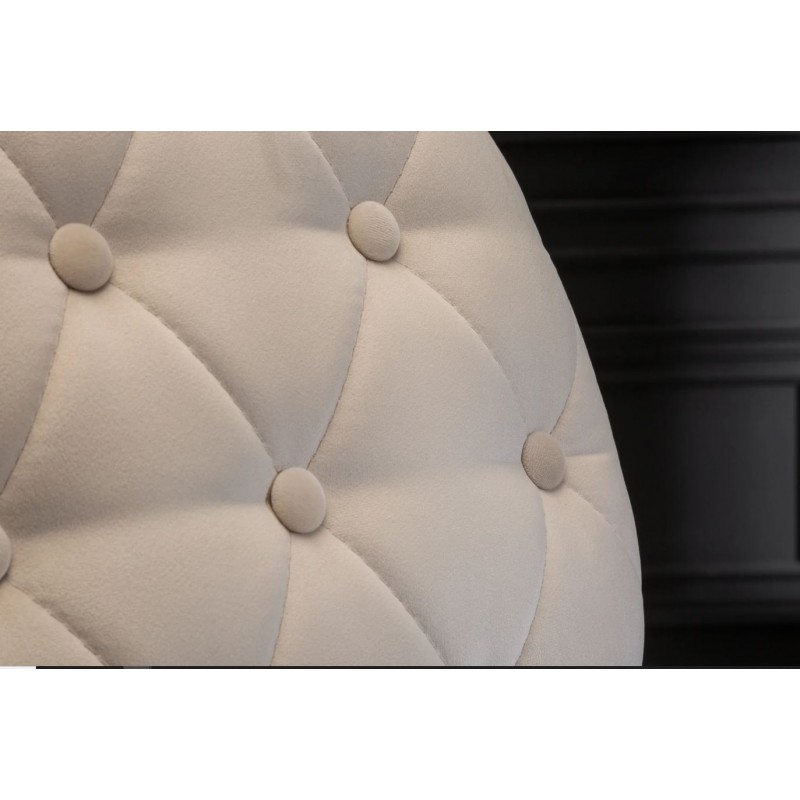 PUF MODERN BAROCK 92X62 CM WELUR BEŻOWY Puf Modern Barock wykonany jest w tkaninie welurowej w kolorze szampańskim. Mebel postawiony został na czarnych, metalowych nogach. Ozdobne pikowania po bokach pufy nadają wyjątkowy charakter całemu meblu. Odpoczynek na nim stanie się przyjemnością, a jego elegancki wygląd upiększy każdy salon. W serii MODERN BAROCK...
