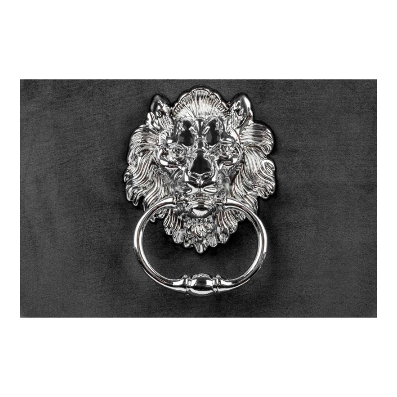 KRZESŁO MODERN BAROCK Z GŁOWĄ LWA CZARNO-SREBRNE WELUR