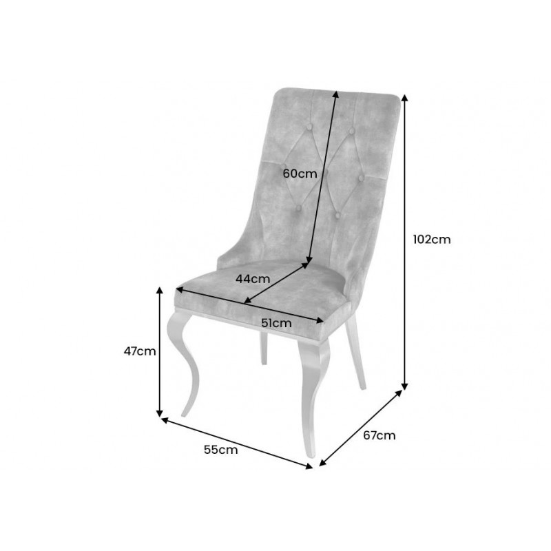 KRZESŁO MODERN BAROCK WELUR SZARE I DOSTĘPNE OD RĘKI - 2SZTUKI Krzesło Modern Barock to mebel w stylu glamour z tapicerowanym aksamitną tkaniną siedziskiem. Pikowania na oparciu dodają elegancji. Nogi wykonane z polerowanej stali nierdzewnej. W serii Modern Barock występuję stół do kompletu. W serii MODERN BAROCK występują również krzesła, stoliki, stoły,...
