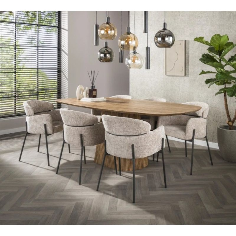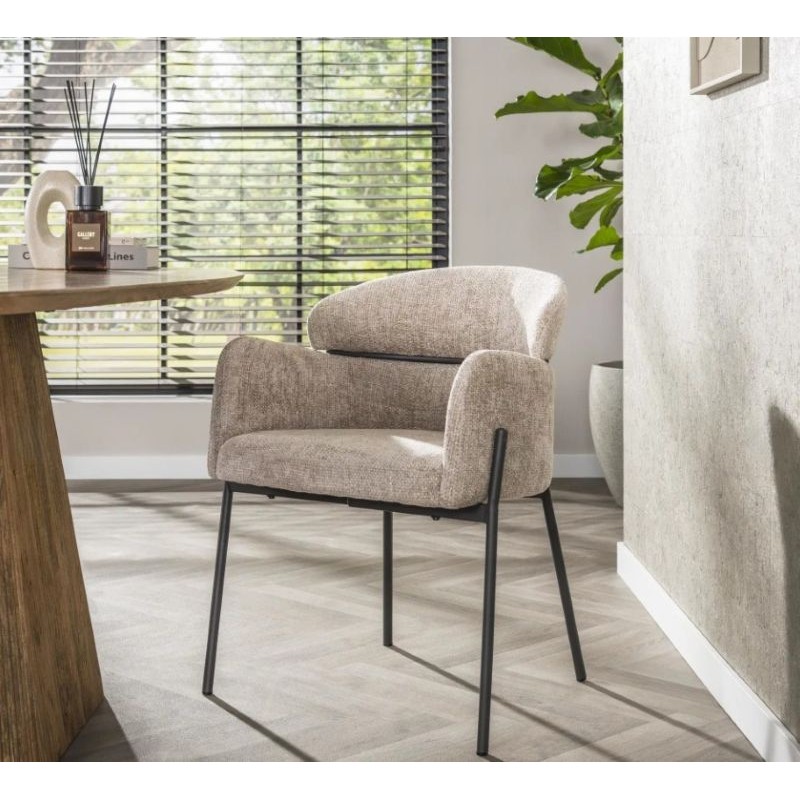 Nowoczesne krzesło MOYEN to mebel posiadający wiele korzyści w jednym produkcie, który bez wątpienia zachwyci swoim kształtem oraz starannym wykończeniem. Już na pierwszy rzut oka zachwyca swoją formą i precyzyjnym wykończeniem. Komfortowe siedzisko, podłokietniki oraz oparcie utrzymano w eleganckim odcieniu beżu, które doskonale komponuje się ze smukłą, ciemną metalową podstawą, tworząc spójną, estetyczną całość. Mebel ten wyróżnia się nie tylko wyglądem, ale również idealnie wyprofilowanym oparciem oraz siedziskiem, które zostały zaprojektowane tak, aby dopasowywać się do sylwetki użytkownika, zapewniając wygodę oraz komfort podczas jego użytkowania. Dodatkowego uroku dodaje modna, pleciona tkanina w beżowym odcieniu, której strukturalna faktura nadaje mu głębi i oryginalności. To właśnie ten detal czyni każdy egzemplarz niezwykle eleganckim, dzięki czemu doskonale odnajdzie się zarówno w klasycznych, jak i nowoczesnych wnętrzach jadalni oraz salonu, dodając przestrzeni niezwykle wyrazistego stylu.