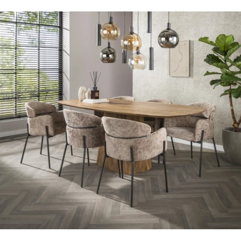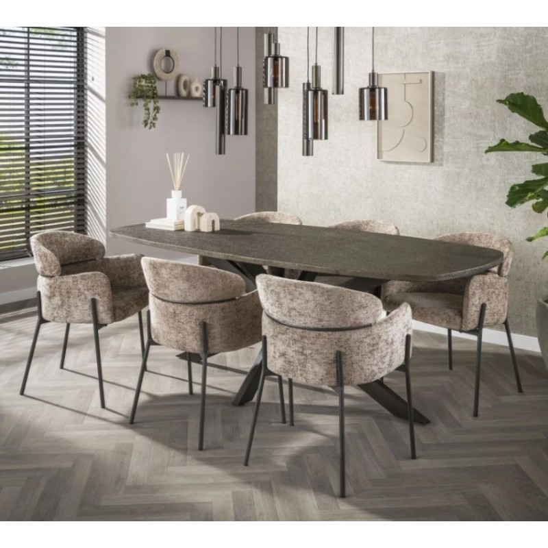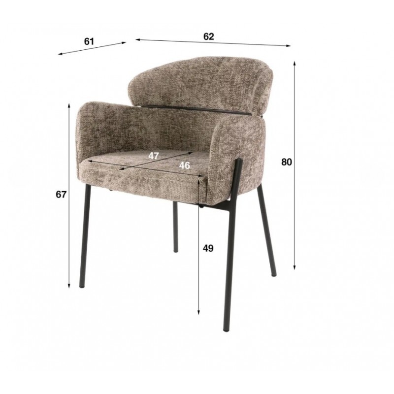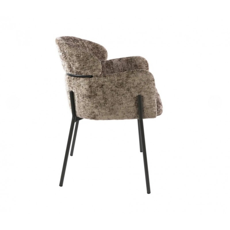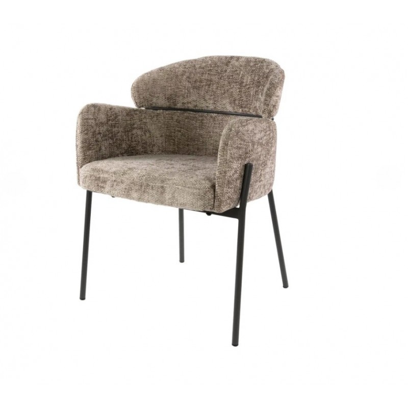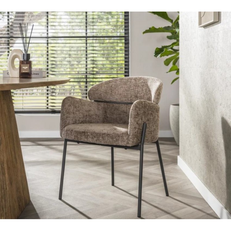 Nowoczesne krzesło MOYEN to mebel posiadający wiele korzyści w jednym produkcie, który bez wątpienia zachwyci swoim kształtem oraz starannym wykończeniem. Już na pierwszy rzut oka zachwyca swoją formą i precyzyjnym wykończeniem. Komfortowe siedzisko, podłokietniki oraz oparcie utrzymano w eleganckim kolorze taupe, które doskonale komponuje się ze smukłą, ciemną metalową podstawą, tworząc spójną, estetyczną całość. Mebel ten wyróżnia się nie tylko wyglądem, ale również idealnie wyprofilowanym oparciem oraz siedziskiem, które zostały zaprojektowane tak, aby dopasowywać się do sylwetki użytkownika, zapewniając wygodę oraz komfort podczas jego użytkowania. Dodatkowego uroku dodaje modna, pleciona tkanina w brązowym odcieniu, której strukturalna faktura nadaje mu głębi i oryginalności. To właśnie ten detal czyni każdy egzemplarz niezwykle eleganckim, dzięki czemu doskonale odnajdzie się zarówno w klasycznych, jak i nowoczesnych wnętrzach jadalni oraz salonu, dodając przestrzeni niezwykle wyrazistego stylu.