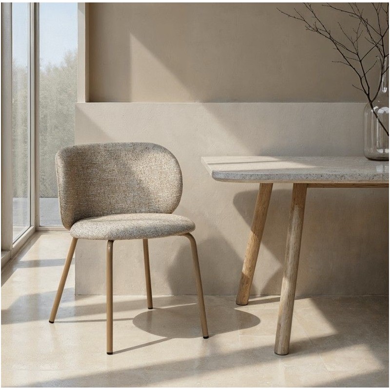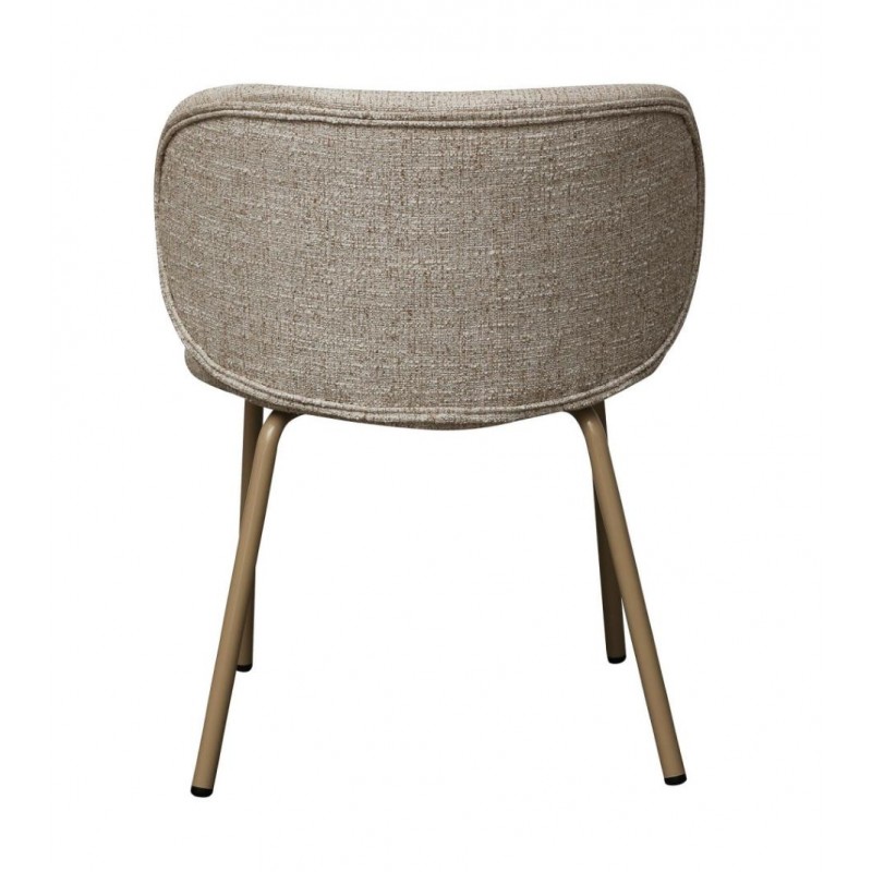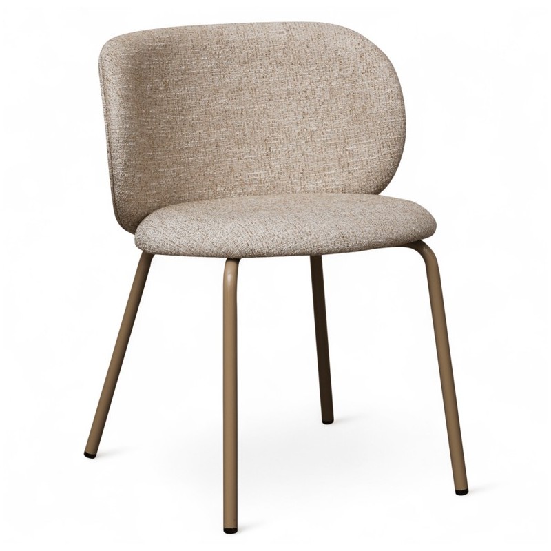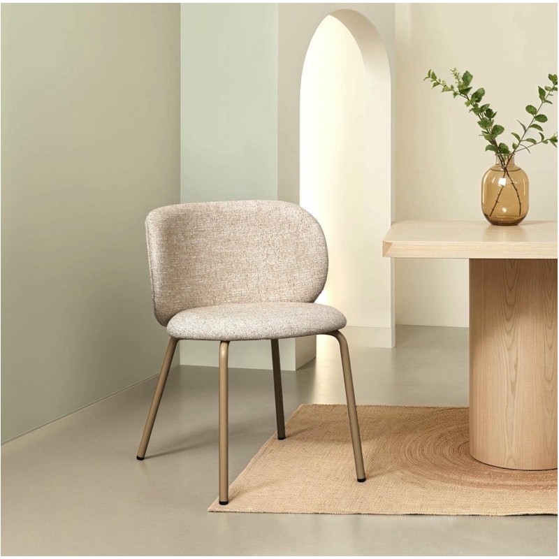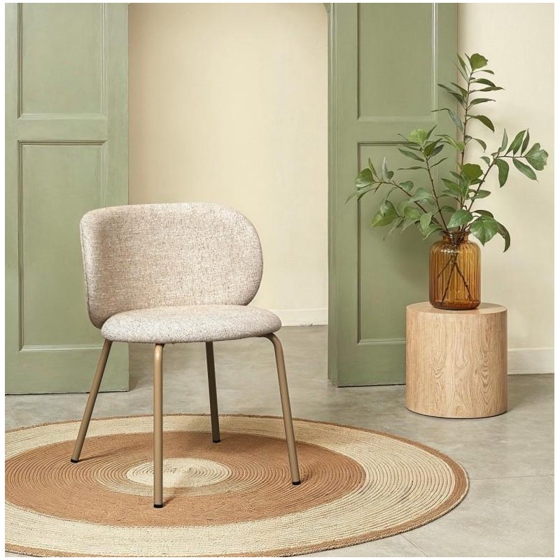 Krzesło NANNA to mebel, którego tapicerowane siedzisko zostało postawione na beżowej smukłej metalowej podstawie. Siedzisko obite zostało modną tkaniną w odcieniach beżu, którego wyjątkowy charakter podkreśla gramatura zastosowanej na nim tkaniny Boucle. Bez wątpienia kubełkowy kształt siedziska gwarantuję wygodę, a wyprofilowane oparcie odpowiednio wspiera sylwetkę siedzącego podczas jego użytkowania. Ponadto oryginalne krzywizny, wygodne siedzisko oraz metalowa podstawa nadają mu wyjątkowy design. Krzesło to stworzone zostało głównie z myślą o użytkownikach ceniących sobie funkcjonalność oraz stylowe wykończenie. Charakterystyczną jego cechą jest tkanina, która zwiększa komfort użytkowania sprawiając, że wygląda bardzo elegancko, idealnie komponując się do stylu nowoczesnego wnętrza.